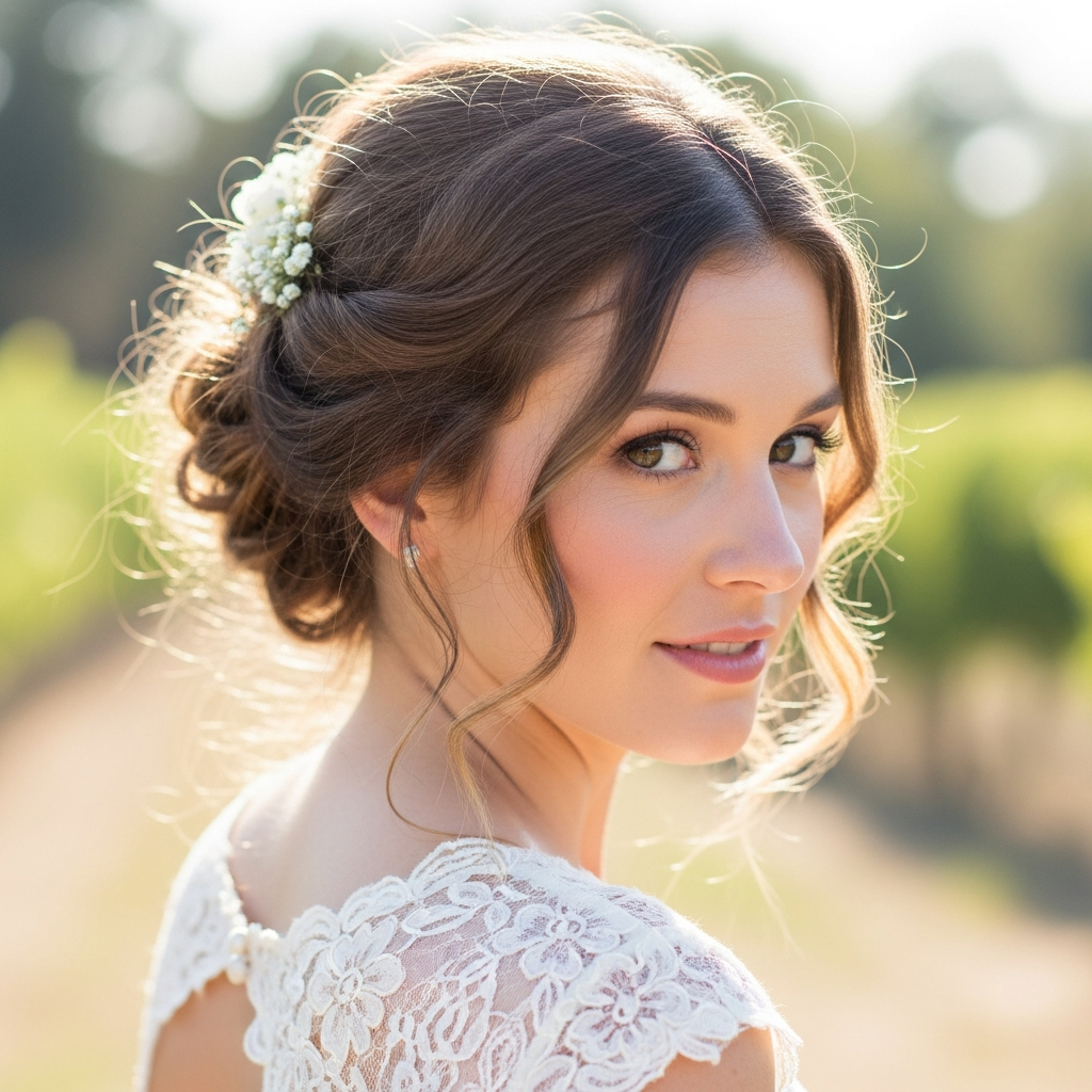 For brides who dream of a soft, ethereal vibe, a romantic loose updo is an exquisite choice. This style embraces natural texture and gentle waves, creating an effortlessly beautiful and enchanting look. It’s perfect for a bohemian, garden, or rustic wedding theme.