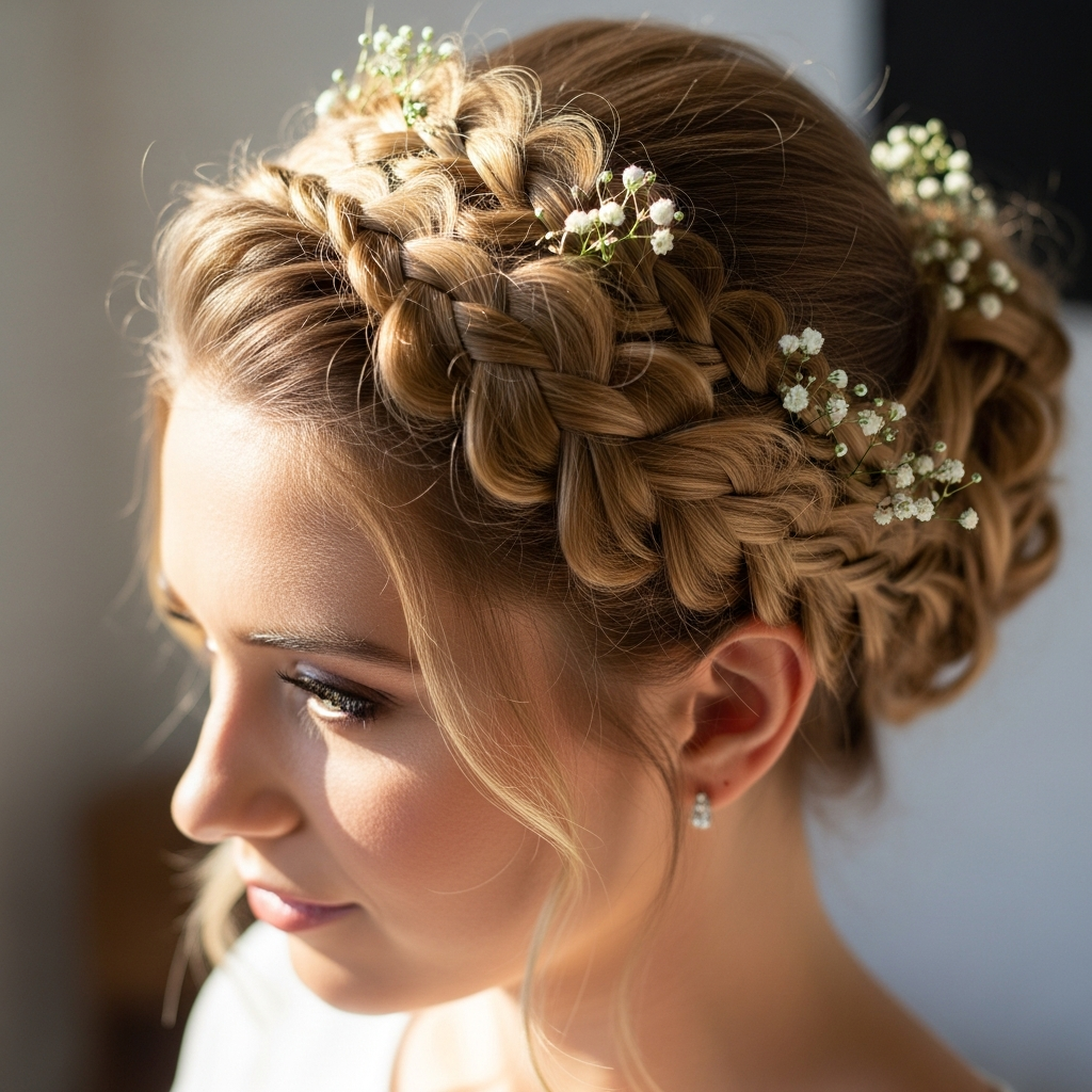 - Summer/Beach Weddings: Opt for updos or braided styles to combat humidity and keep hair off your neck. Lightweight, airy looks like a messy bun or boho braids work well. Keep accessories minimal and practical.