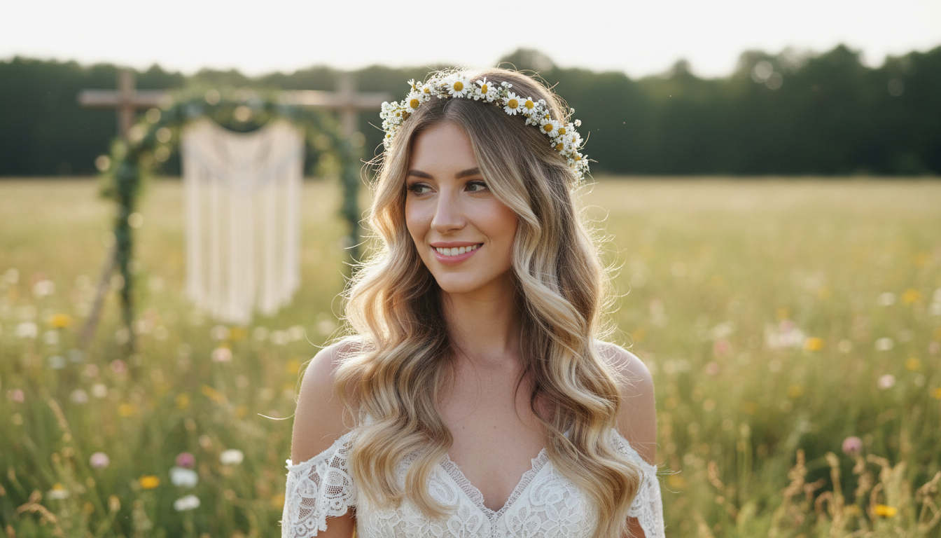 Boho waves are a timeless favorite, embracing a relaxed, romantic, and whimsical feel. This style is all about soft, flowing movement that looks naturally beautiful, often paired with delicate floral accents or a simple hair vine. It’s perfect for outdoor, garden, or destination weddings.
