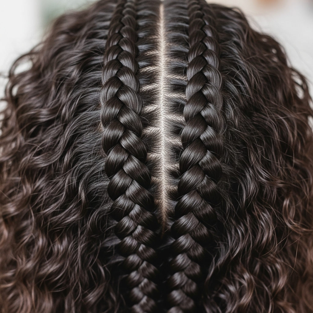 Dutch braids, also known as inverted French braids, sit on top of the hair and are ideal for compressing frizz. By weaving the hair sections under one another, you create a sturdy structure that locks the curls in place. This style is particularly effective for active days or humid weather, as it leaves no room for the hair to swell. A quick mist of shine spray over the finished braids provides a mirror-like sheen.