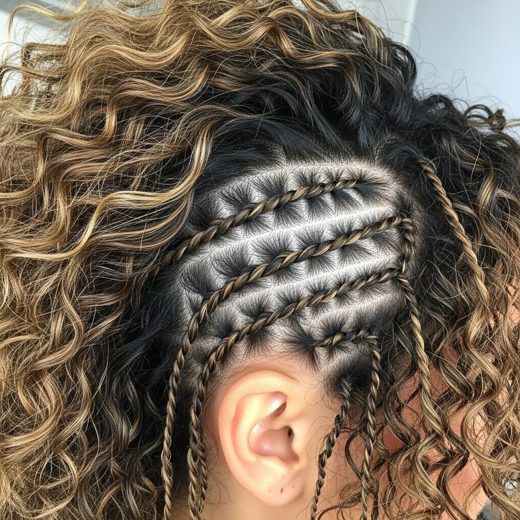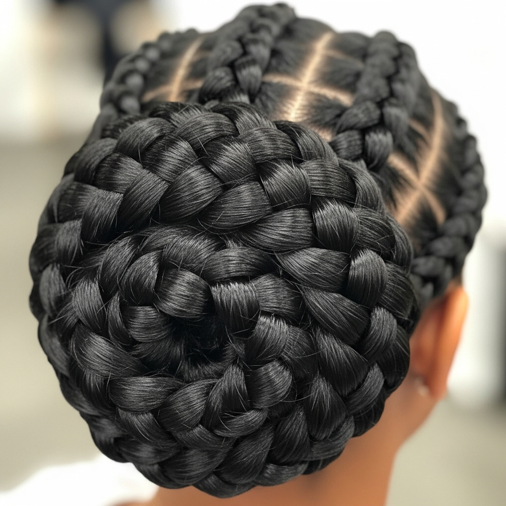 Dividing the hair into three distinct braided sections before pinning them into a low bun offers unparalleled control for thick curly hair. Braiding keeps the hair strands aligned and taut, which physically prevents the cuticle from lifting. Once the braids are wrapped into a bun, the ends are protected from environmental damage. This style creates a complex, textured aesthetic that reflects light beautifully from every angle.