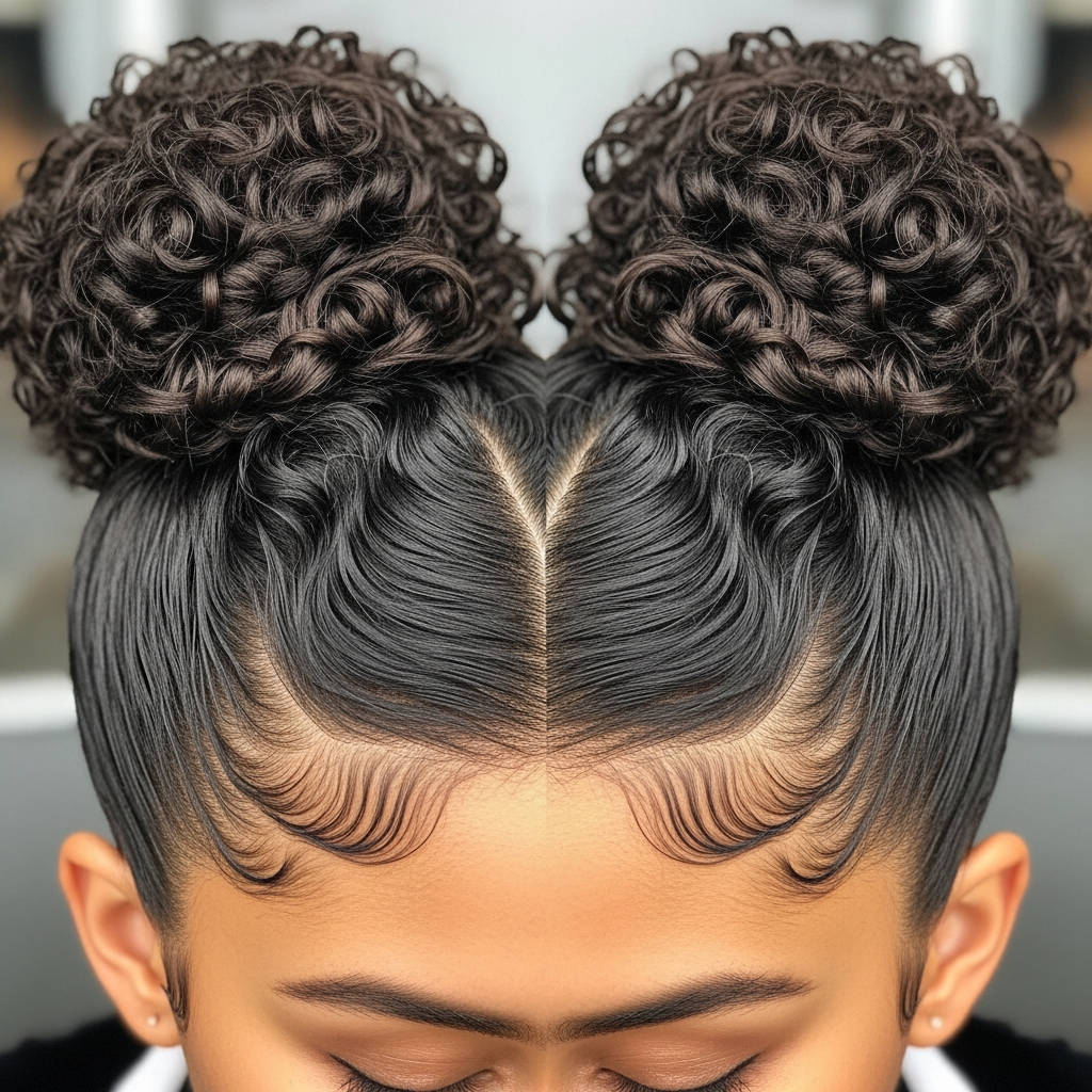 Space buns are a versatile option that can be made professional by ensuring a slicked-back base. By splitting the hair into two even sections and using a high-hold gel, you can secure the curls into two compact buns. This total containment method is one of the most effective ways to hide frizz and highlight the natural luster of the hair. It is a playful yet controlled way to manage voluminous textures.