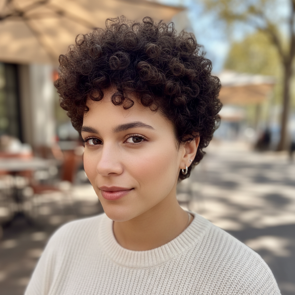The Voluminous Top with Tapered Sides – Curly Pixie or Short Bob