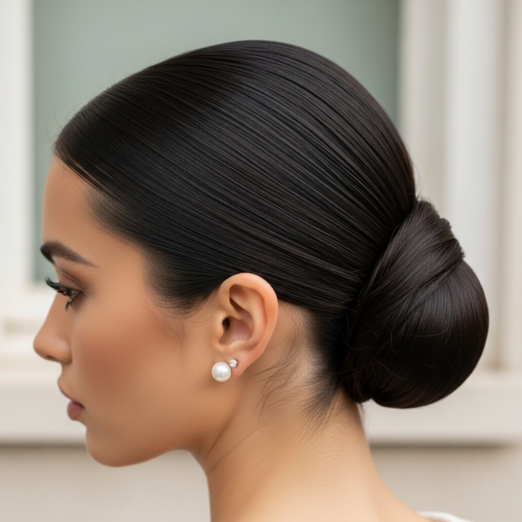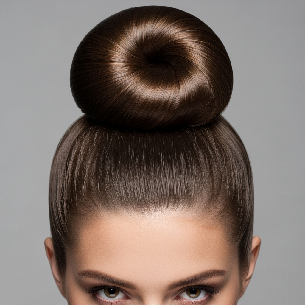The high ballerina bun is a classic choice for those who want their hair completely out of the way. It sits high on the head, providing an instant face-lift effect and a very clean, professional silhouette. Using a donut shaper can help achieve the perfect circular form for thinner hair types.