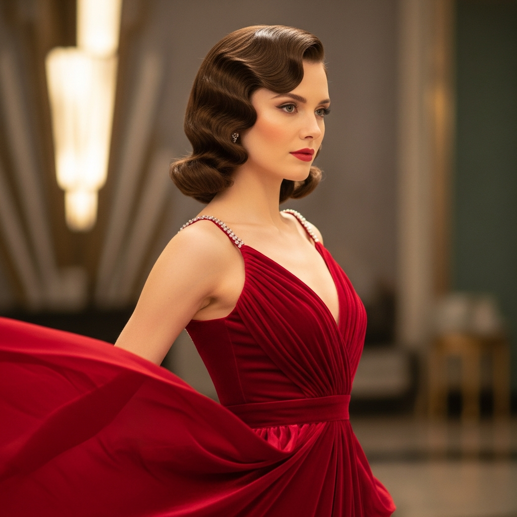 Inspired by the silver screen icons of the 1940s, vintage Hollywood curls are defined by a deep side part and uniform, sculpted waves. This look is synonymous with red-carpet glamour and pairs perfectly with bold red lipstick and statement jewelry. It requires a setting spray with a strong hold to maintain its structured shape.