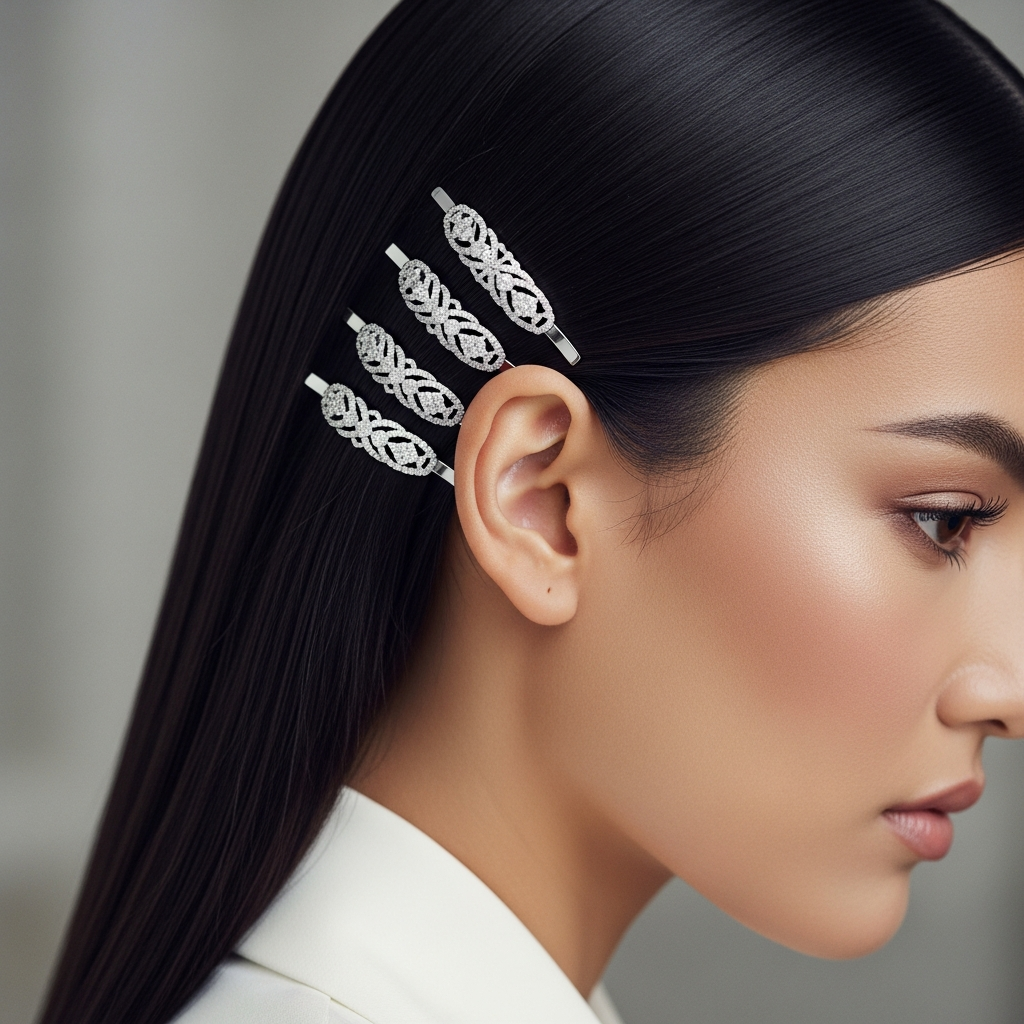 Sometimes simplicity is the height of elegance. A bone-straight, high-shine look can be elevated for a party by adding oversized, decorative hairpins on one side. This modern look is perfect for those who want to focus on their makeup or a particularly detailed neckline.