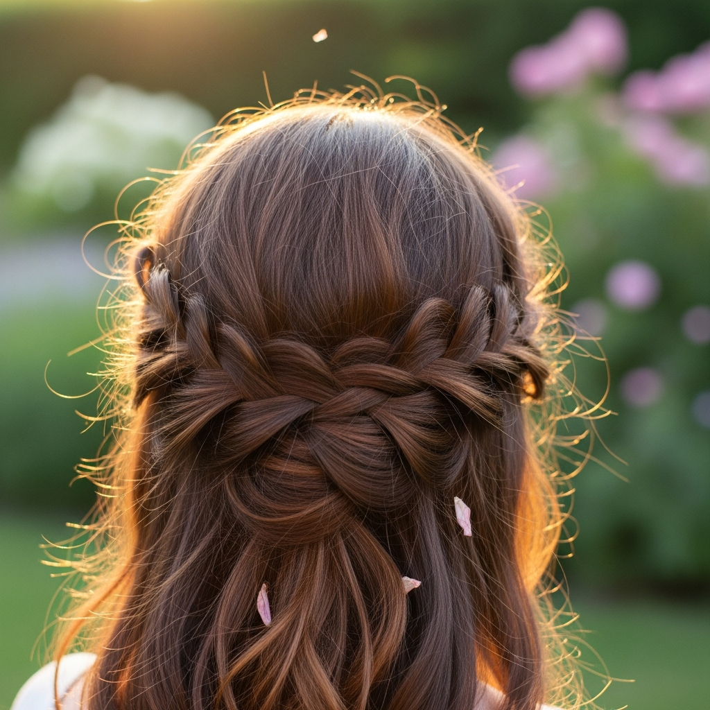 A twisted halo involves two sections of hair twisted from the temples and met at the back. This look is softer than a traditional braid and provides a romantic, ethereal aesthetic. It is especially beautiful when paired with a light, airy chiffon dress.