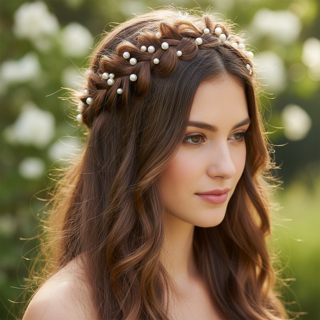 When you can’t decide between an updo and letting your long hair flow, a half-up half-down style offers the best of both worlds. It frames the face beautifully while allowing your length to shine, often with an elegant detail.