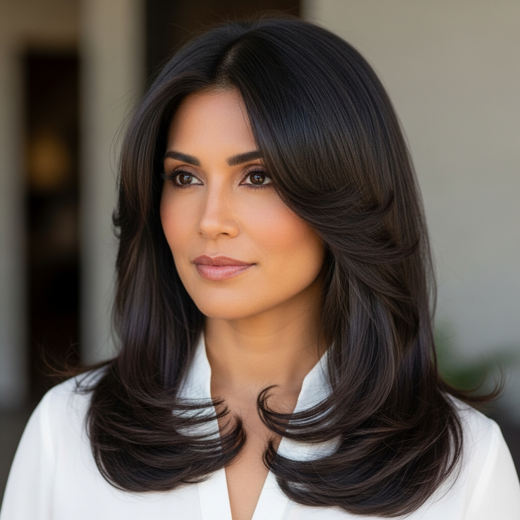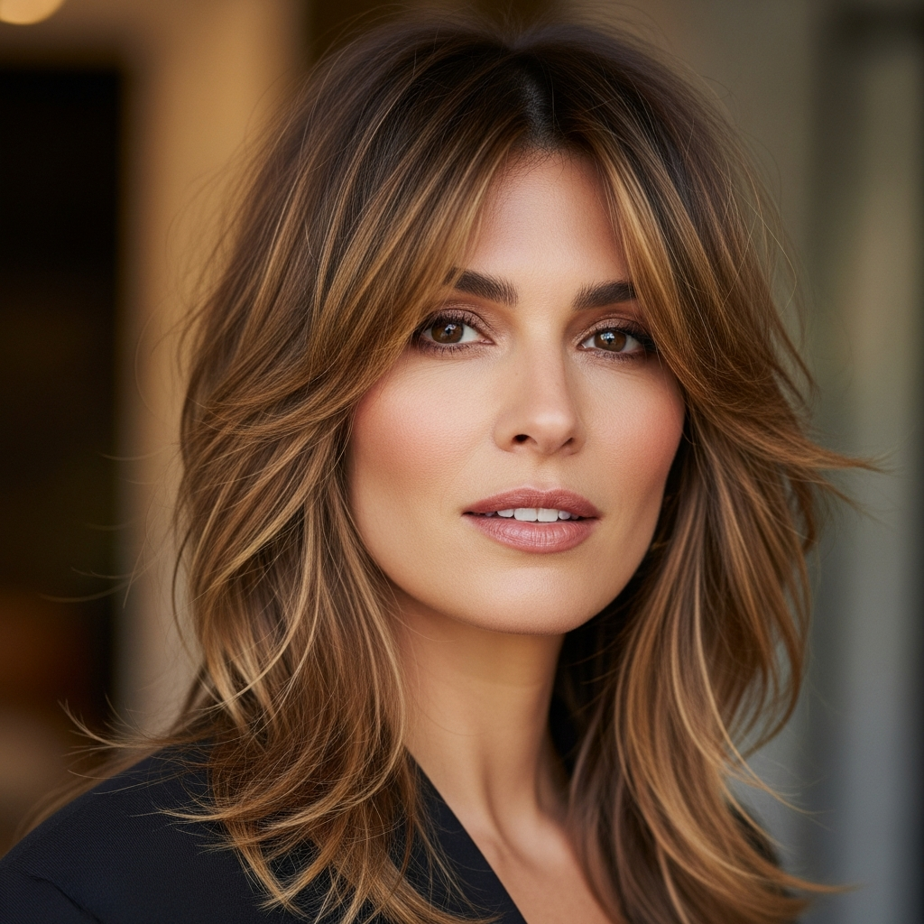 Suitable for: All long hair lengths, especially medium to thick hair. Works well with straight, wavy, and slightly curly textures. Face shapes: Oval, round, square, and heart-shaped faces all benefit from the softening effect of layers.