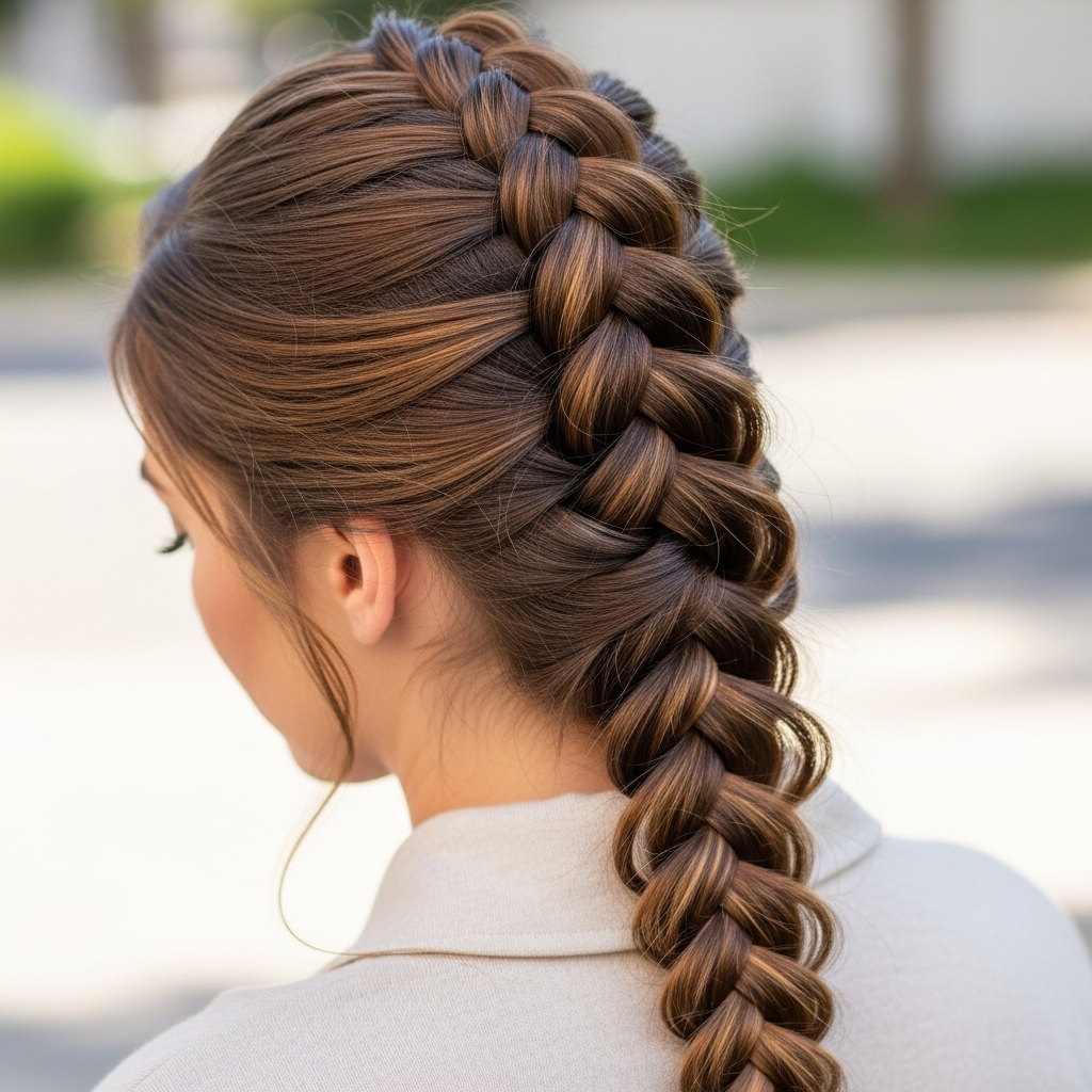 Styling method: Start with detangled hair. Take a section of hair from the crown and divide it into three strands. Begin a normal three-strand braid, but each time you cross a side strand over the middle, pick up a new small section of hair from that side and add it to the strand before crossing. Continue down to the nape of your neck, then finish with a regular braid and secure.