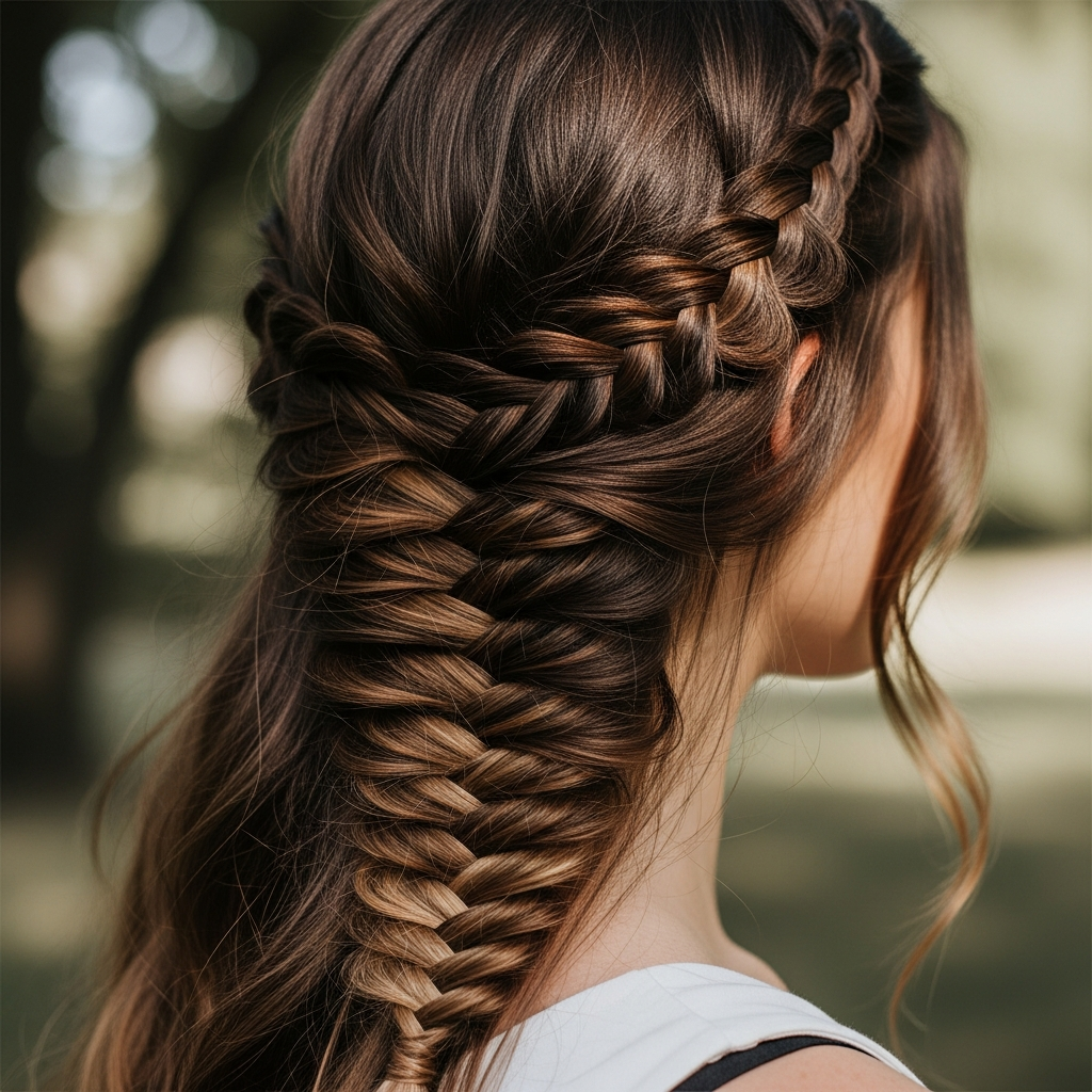 Recommended tools/products: Small clear elastic bands, texture spray, bobby pins (optional for securing braids near the face). Tips to make it last: Use clear elastics that blend seamlessly. Don’t make the braids too tight; keep them loose and organic-looking.