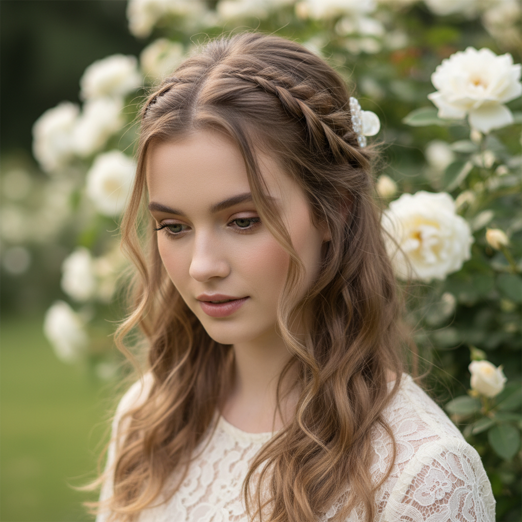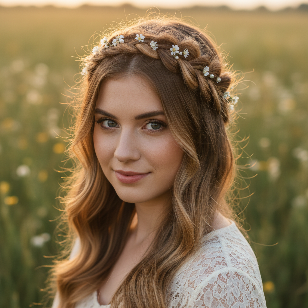 A crown braid half up is a regal and stunning choice, perfect for weddings, proms, or any event where you want to make a statement. It beautifully frames the face.