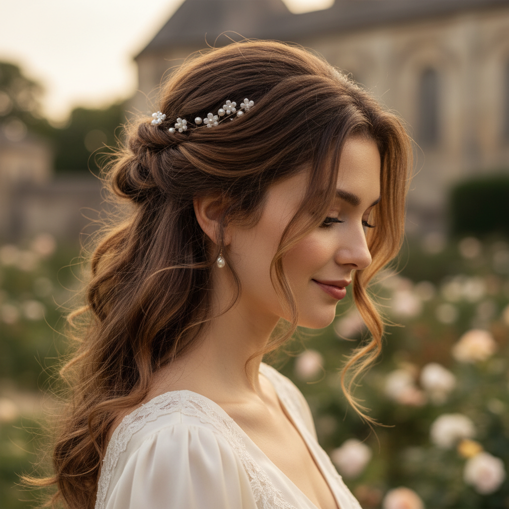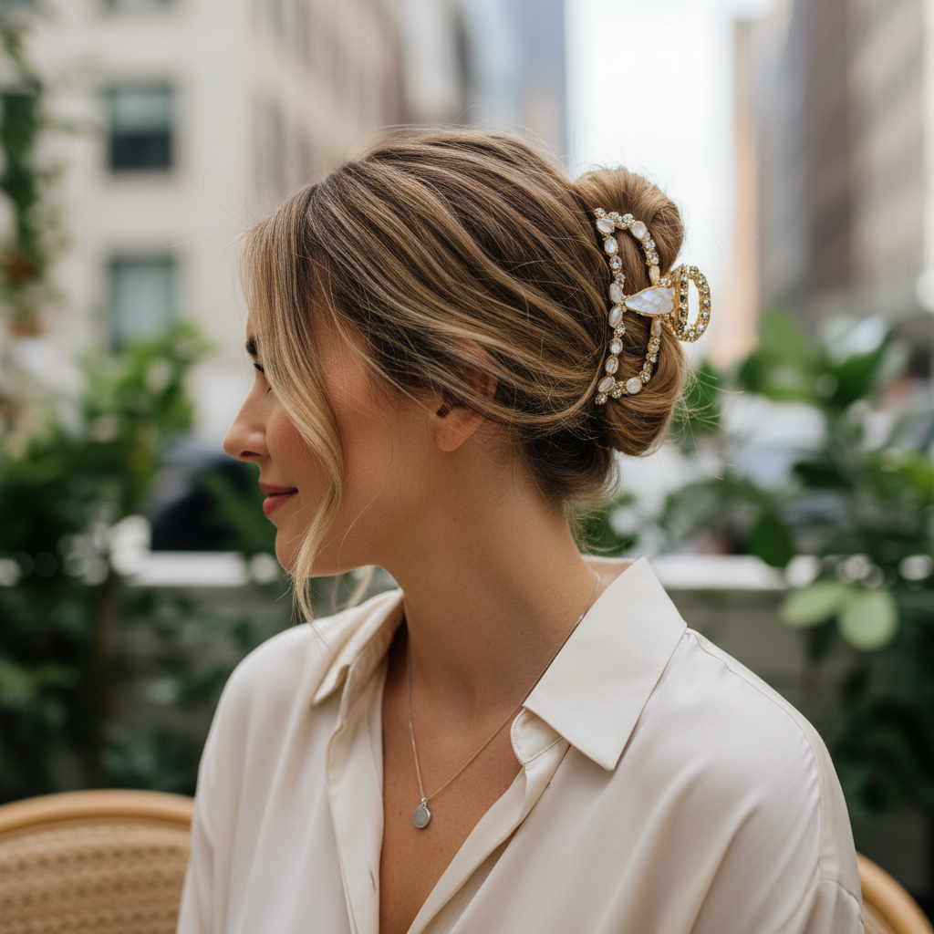 When time is of the essence, a decorative hair clip can instantly elevate a simple half-up style. This look is chic, quick, and makes a stylish statement with minimal effort.
