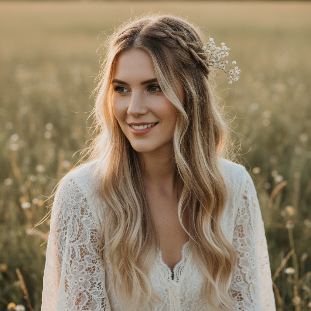 For a charming, boho-inspired aesthetic, the simple braided half-up is an ideal choice. It adds an intricate detail without requiring advanced braiding skills.