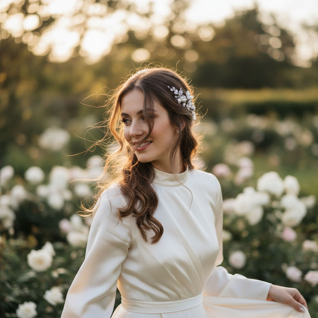 A sophisticated twist on the classic half-up, where the secured section is subtly looped, creating an elegant, flowing detail.