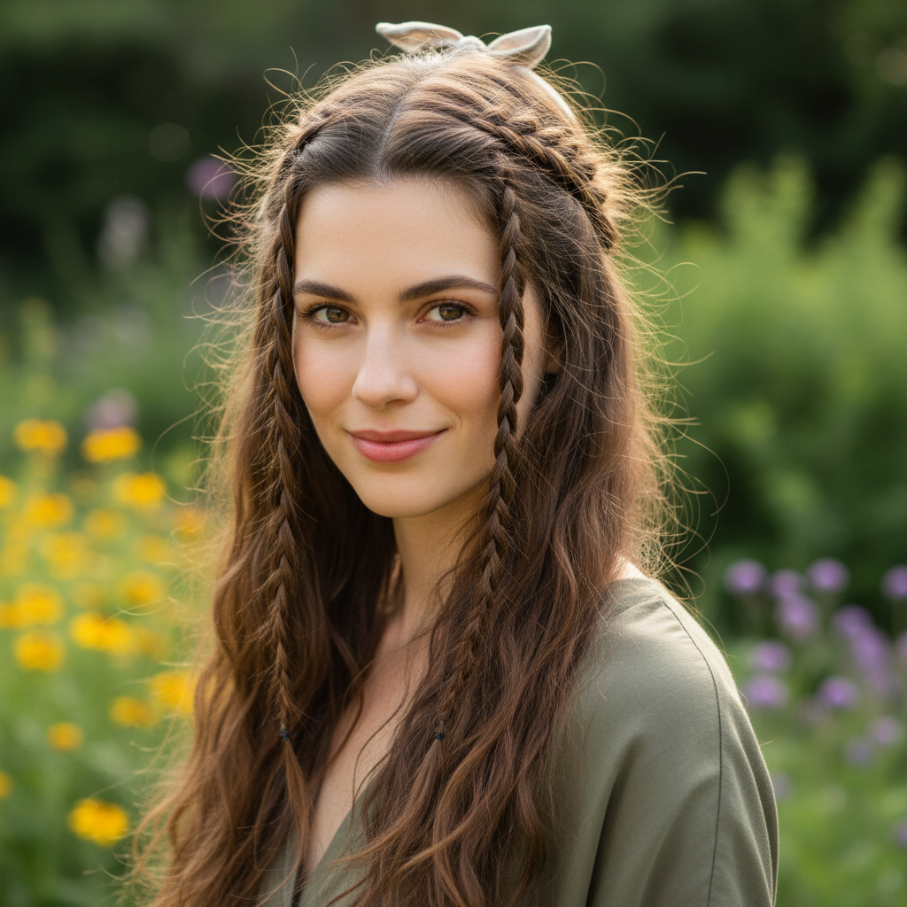 This delicate style adds a touch of bohemian charm, drawing attention to your features while keeping hair soft and flowing.