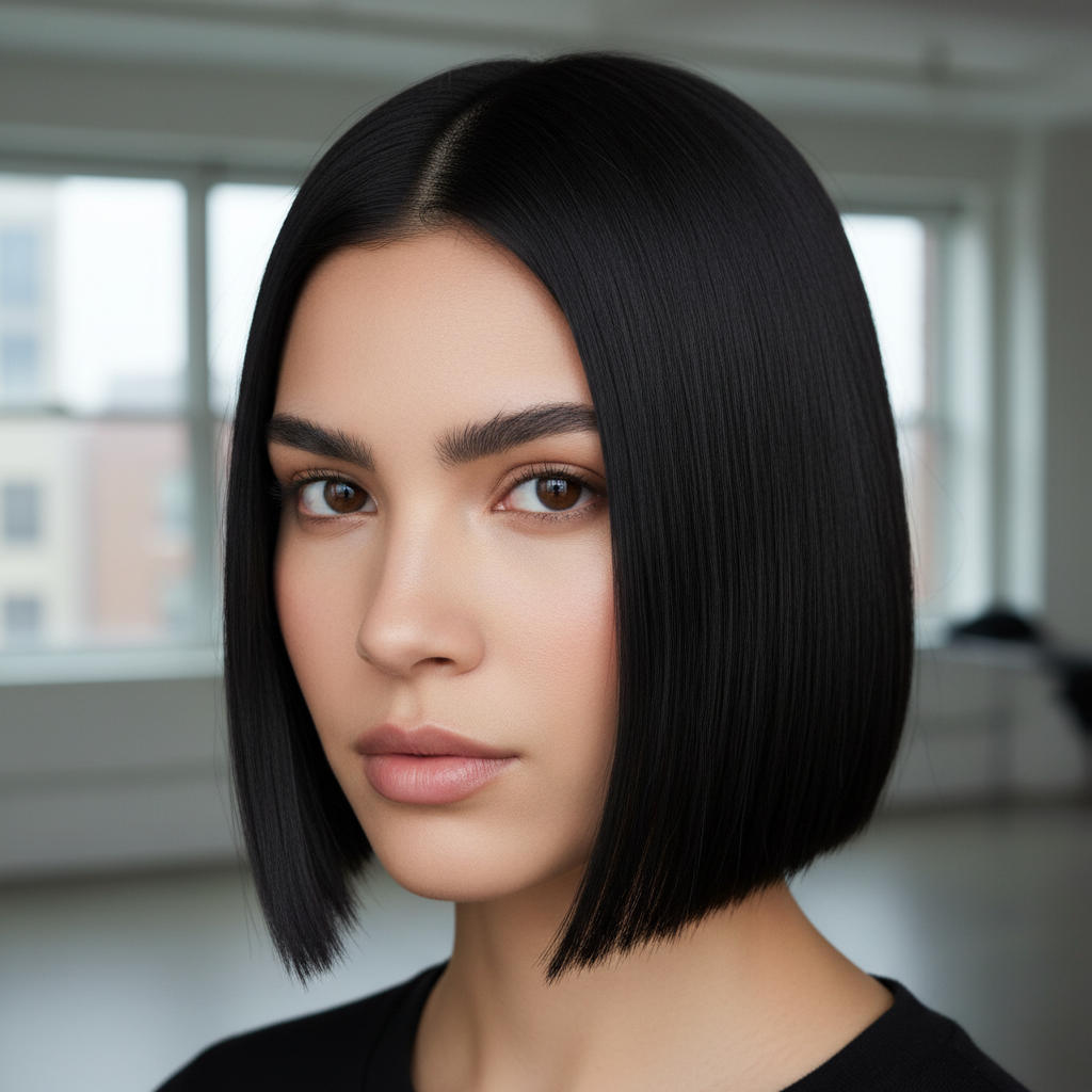 - Styling Method or Technique: Blow-dry with a paddle brush, directing hair downwards and inwards to emphasize the angle. Finish with a flat iron for extra sleekness.