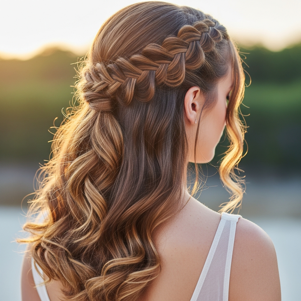 A twisted halo involves taking two sections of hair from the front and twisting them back to meet at the center, creating a crown-like effect. This style is ethereal and keeps the hair away from the face while allowing the length to hang freely. It is perfect for garden parties or spring events where a soft, feminine look is desired.
