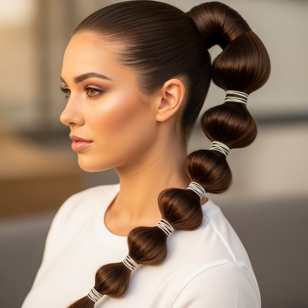 The bubble ponytail is a playful and modern take on the traditional pony. By placing elastics at equal intervals down the length of the hair and puffing out the sections in between, you create a series of bubbles. This style is incredibly photogenic and is a favorite for social media influencers and music festival attendees.