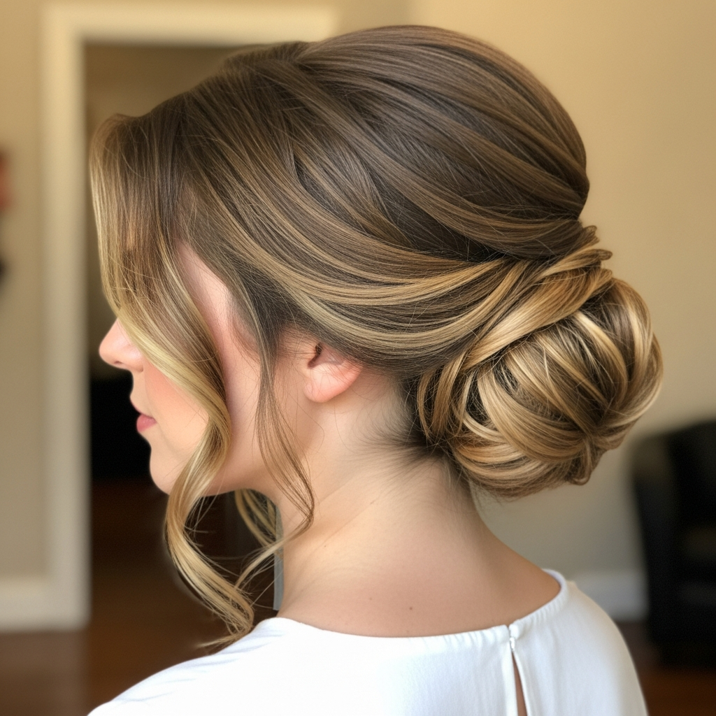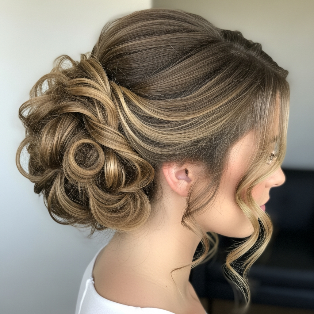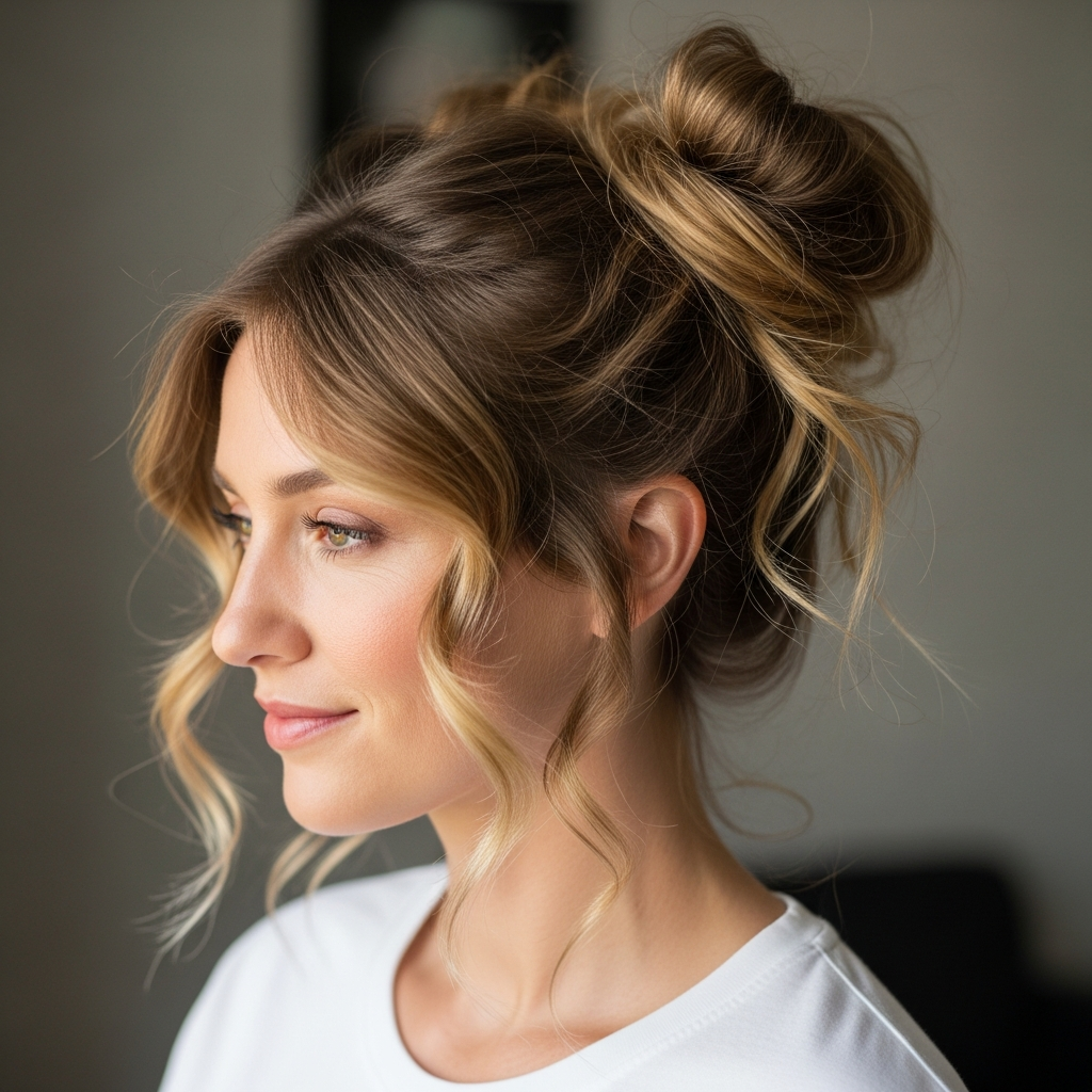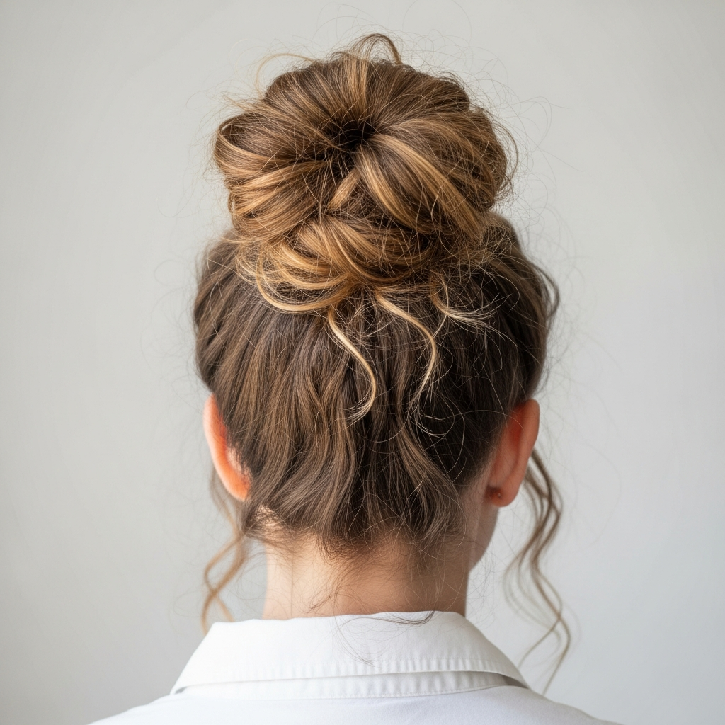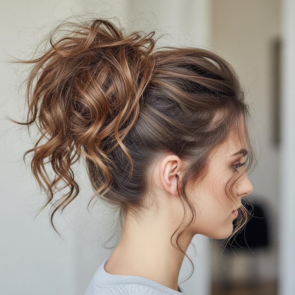 14. Voluminous Updo (Messy Bun with Pulled-Out Pieces)