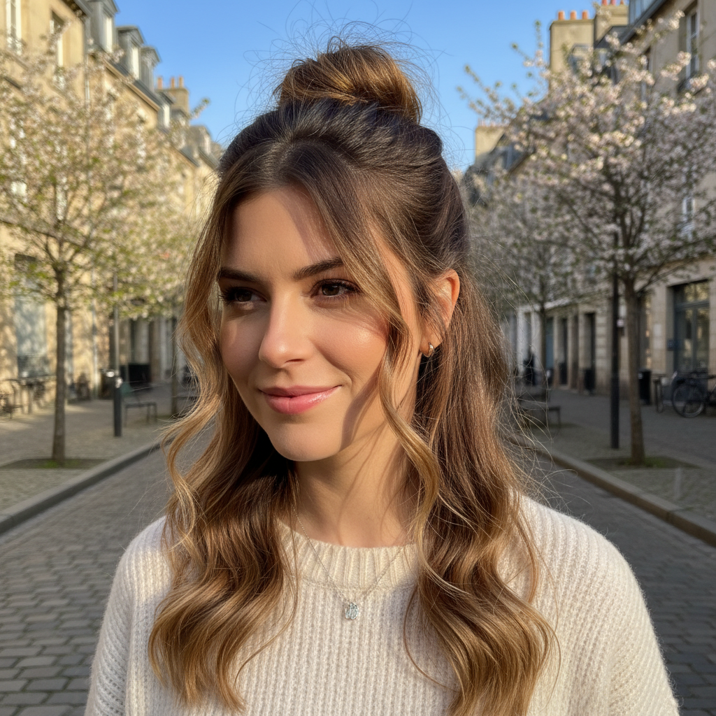 This playful style combines the best of both worlds—hair out of your face, yet still flowing freely. It’s youthful, chic, and incredibly versatile for daily wear.