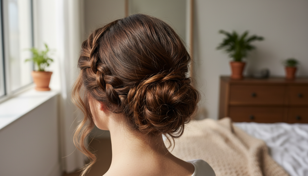 The Messy Bun with Braids – Bohemian Charm