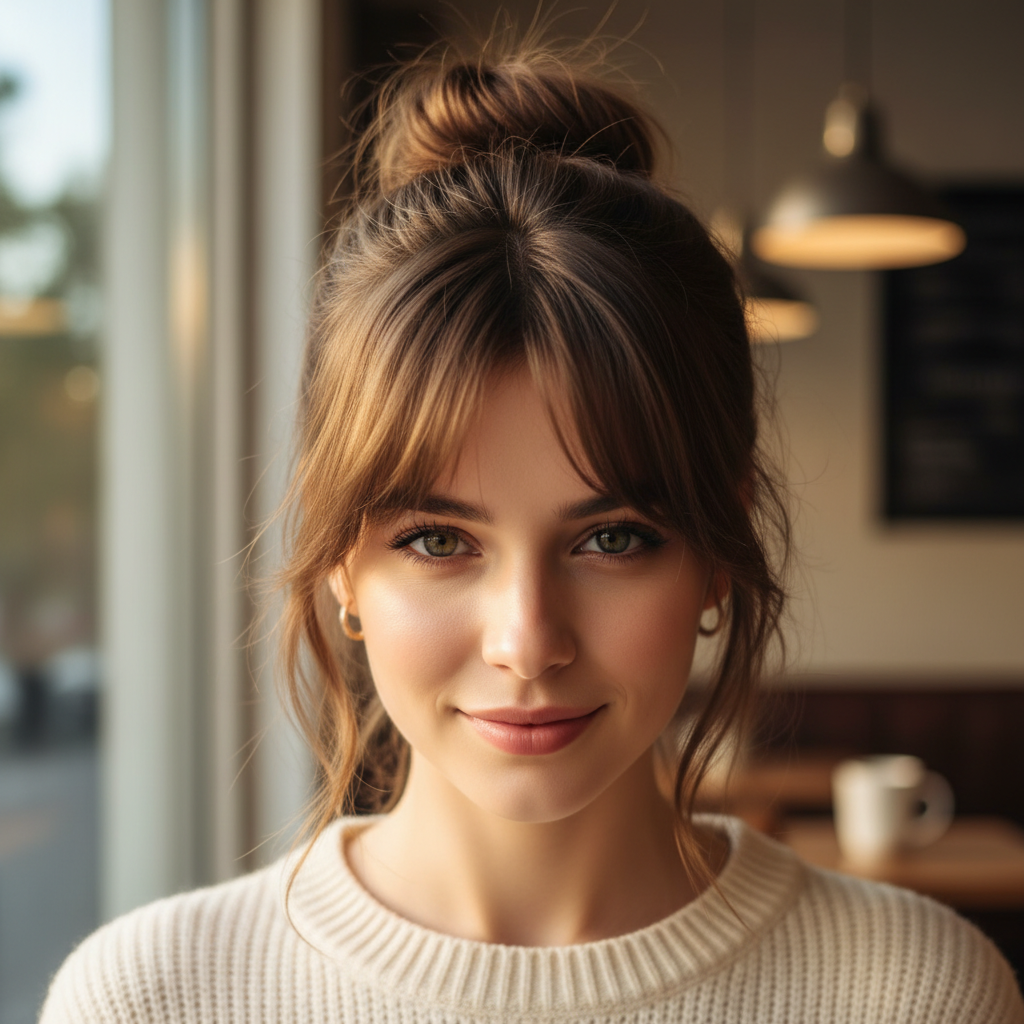 Messy Bun with Bangs