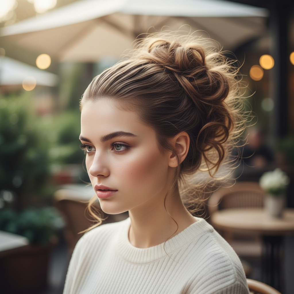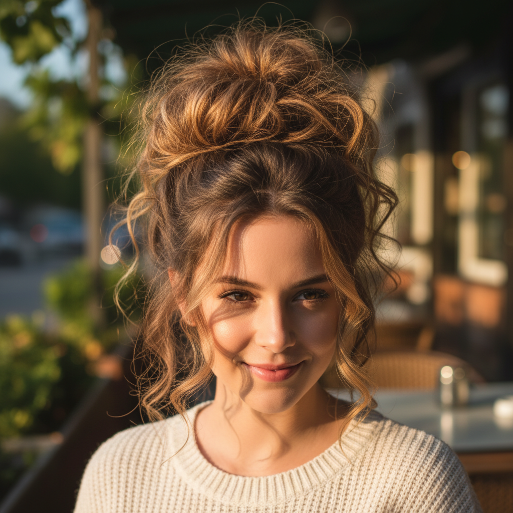 This is the quintessential messy bun – an elevated, carefree look that’s both stylish and functional. It keeps hair off your neck and face while adding a playful bounce.