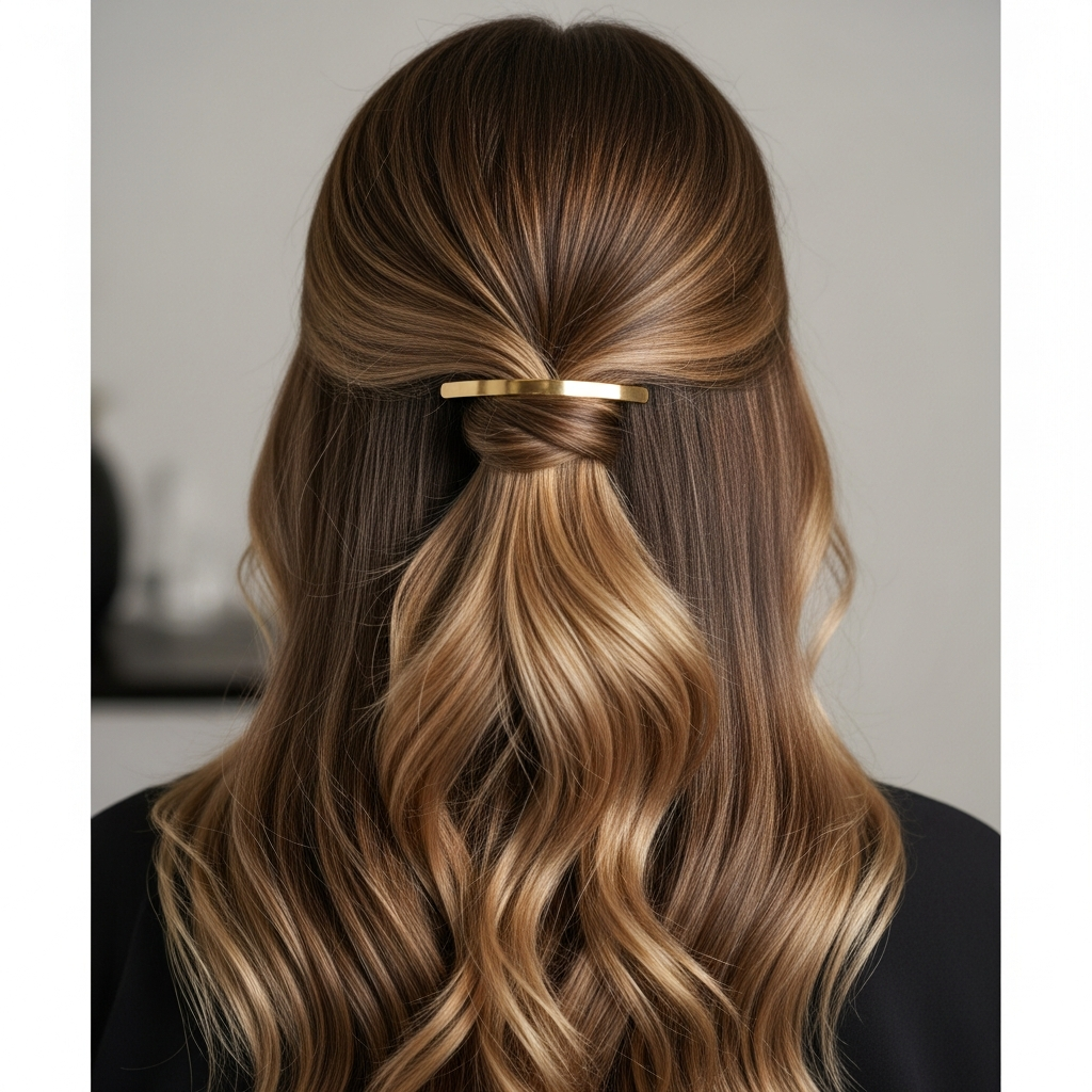 The twisted half-up style is a modern evolution of the traditional half-down look. Take two sections of hair from the front and twist them away from the face, securing them at the back with a minimalist metal clip or a silk ribbon. This style keeps the hair controlled while showcasing the full length of the tresses behind the shoulders. It strikes a perfect balance between casual comfort and professional decorum.