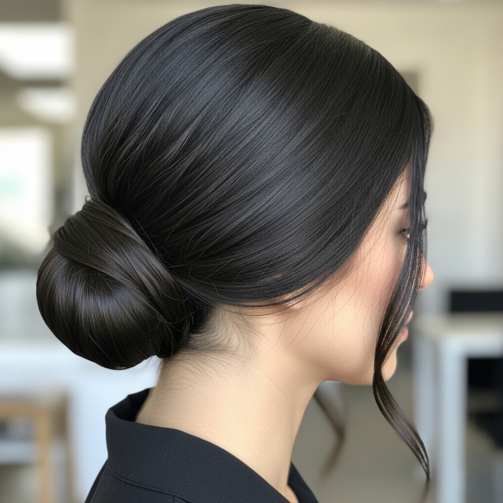Embracing the clean girl aesthetic, the minimalist low bun is both functional and chic. Gather the hair at the base of the neck and fold it into a simple loop or a compact bun. The key to this look is the use of a shine-enhancing pomade to ensure every strand is in place. It is an excellent choice for showing off statement earrings or a detailed neckline while keeping the focus on a clean, professional face.