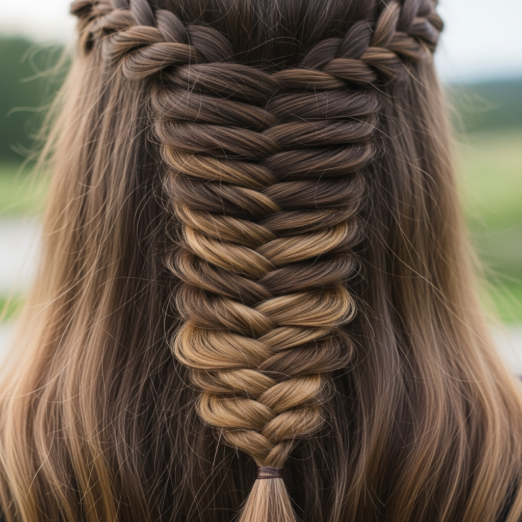 The fishtail braid is more detailed than a standard three-strand braid and looks particularly impressive on naturally long hair. By using smaller sections, the braid appears more intricate and textured. For a modern twist, pancake the braid by gently pulling on the edges to make it appear wider and more voluminous. This style is ideal for those who want a secure hairstyle that still feels artistic and sophisticated.