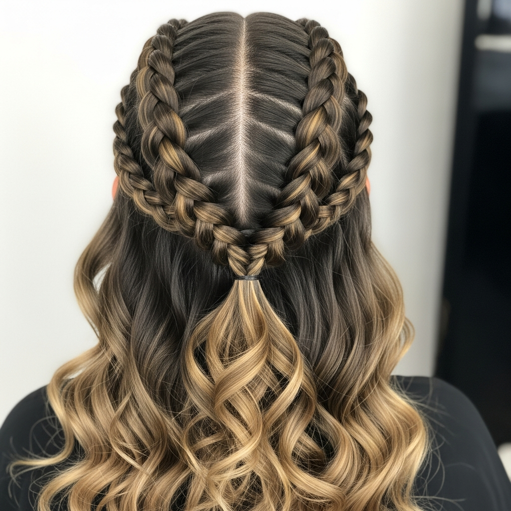 Combine the security of braids with the beauty of loose curls. Create two Dutch braids starting from the hairline and stop at the crown or the nape, leaving the rest of the hair to flow naturally. This ‘half-braided’ look provides the best of both worlds: a secure, polished front and a wild, textured back that celebrates your natural hair.