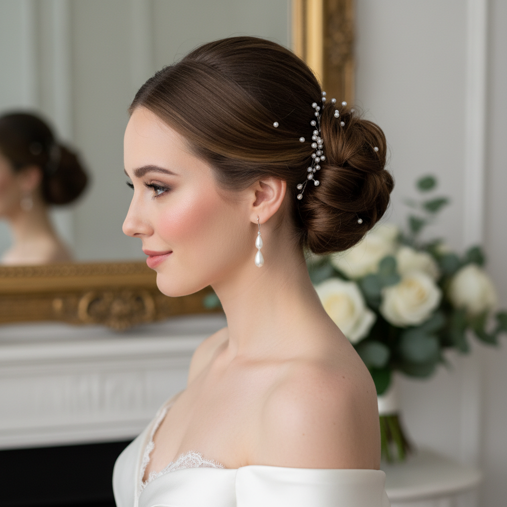 The chignon is the epitome of bridal elegance, a low bun that can be sleek or softly textured. It exudes sophistication and works beautifully with almost any dress neckline.