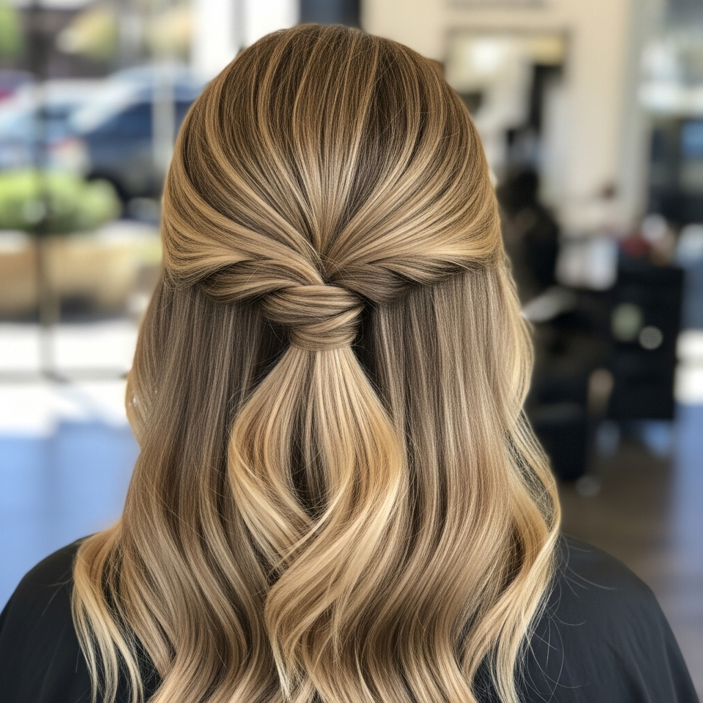 The twisted half-up is a beautifully simple and elegant way to style long hair. It keeps the front sections out of your face while allowing your length to flow freely.