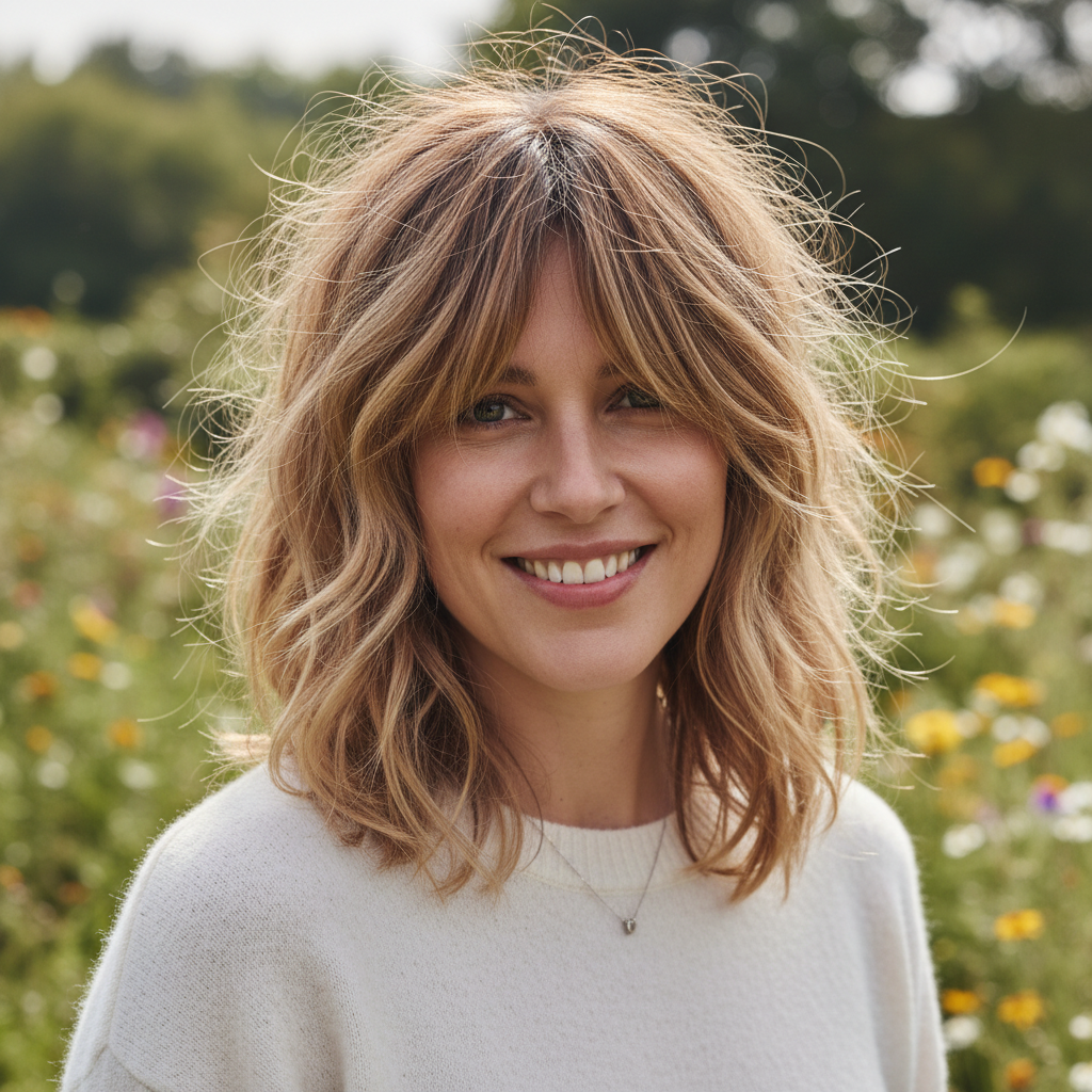 A versatile cut that flatters most face shapes, especially round and heart-shaped faces, as the layers and waves add dimension and softness.