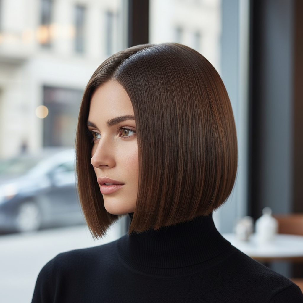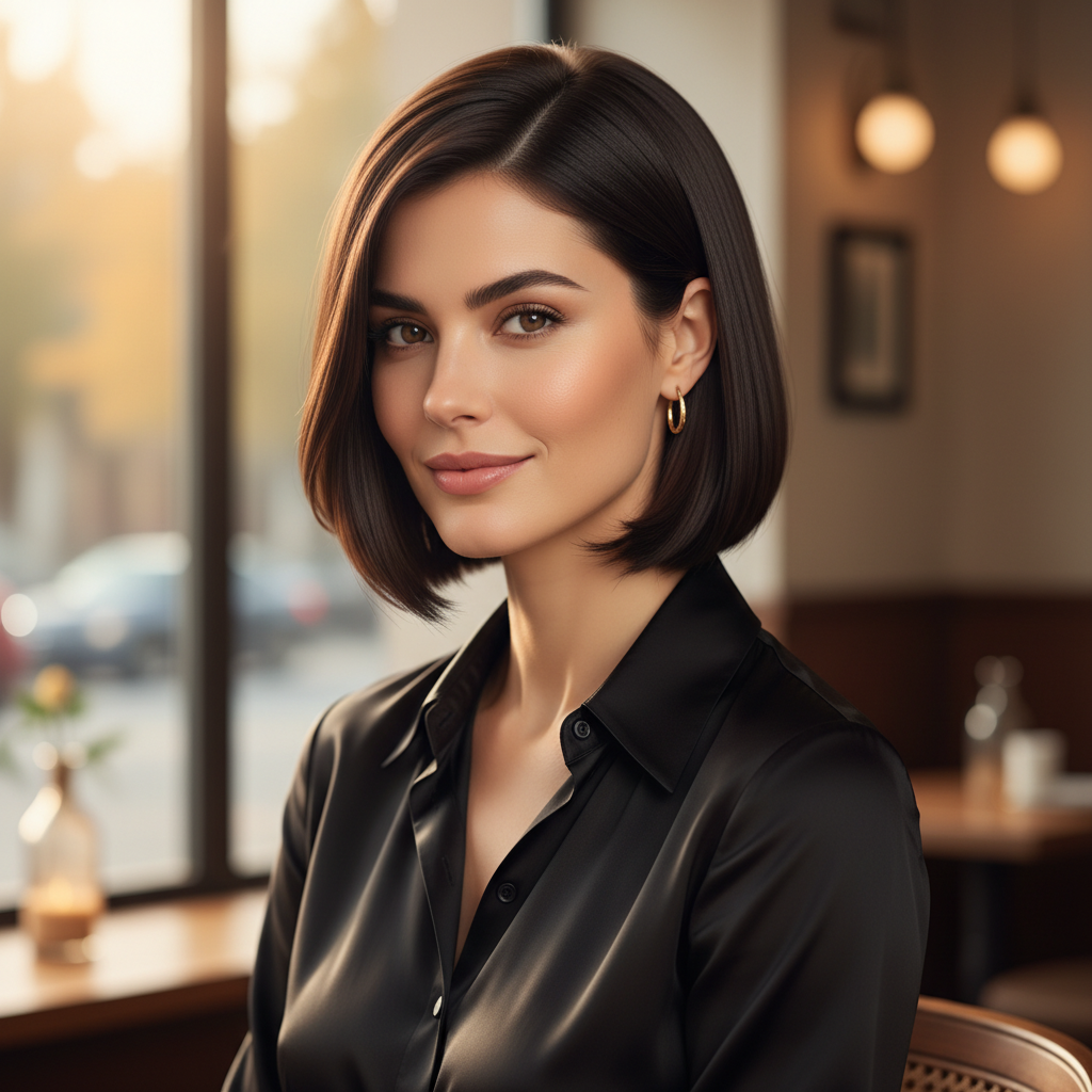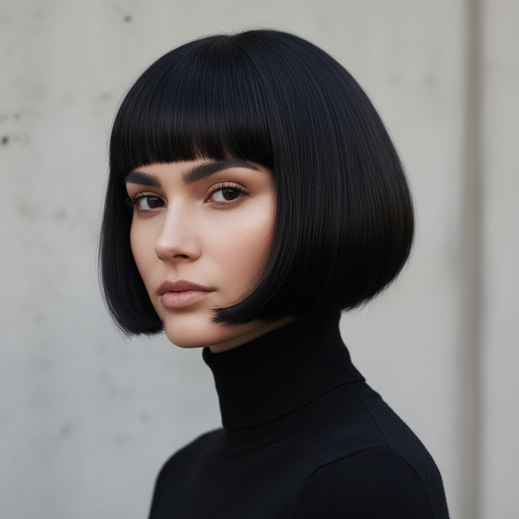 - Hairstyle Name or Type: Blunt Bob, One-Length Bob.
