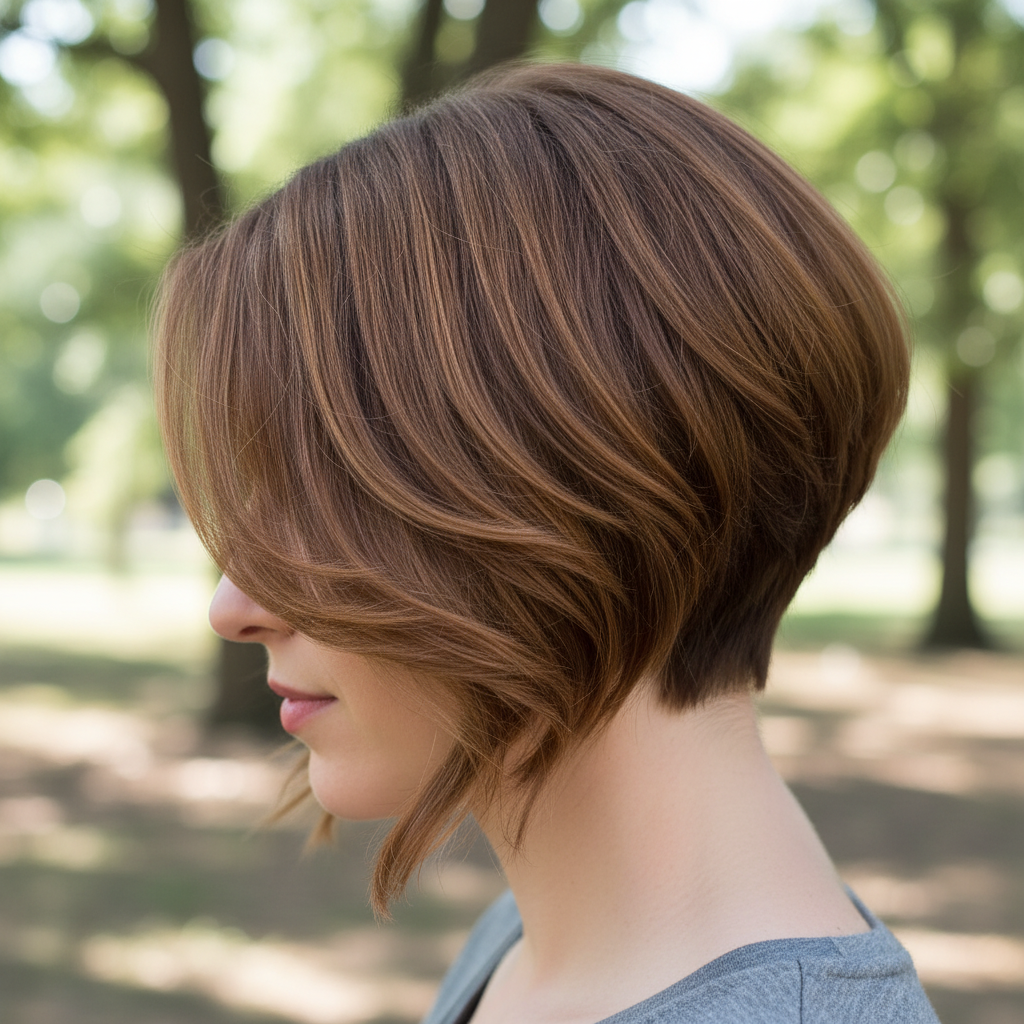 - Hairstyle Name or Type: Graduated Bob, Stacked Bob.