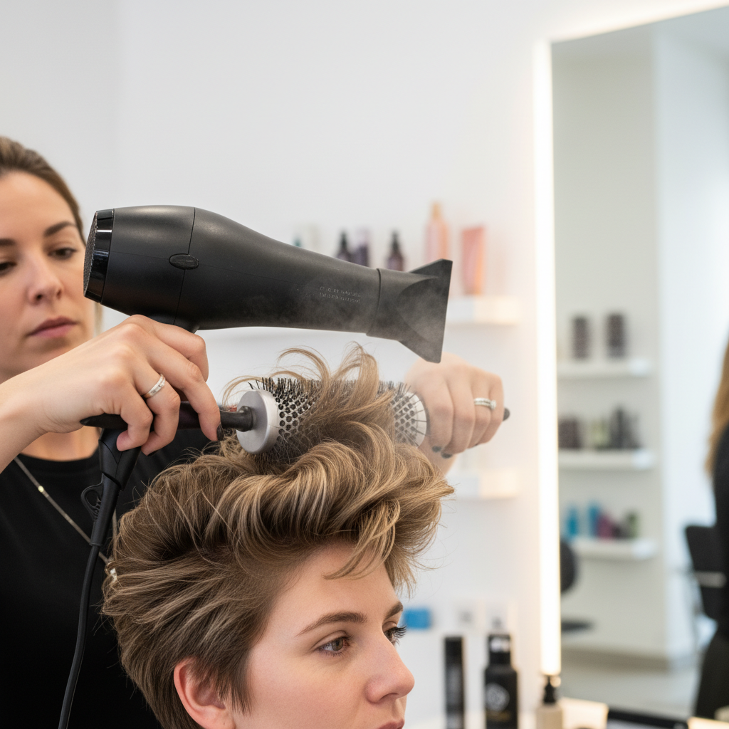 - Recommended Hair Tools and Products: Volumizing mousse, styling cream, small round brush, light hold hairspray.