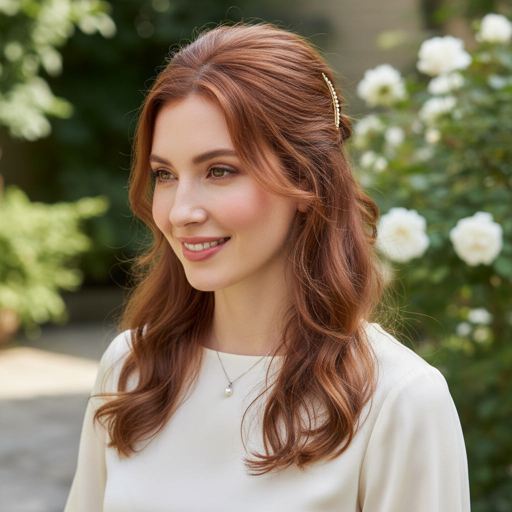 The half-up half-down style offers the best of both worlds—it keeps hair out of your face while still showcasing your beautiful long length. It’s perfect for a relaxed yet put-together vibe.