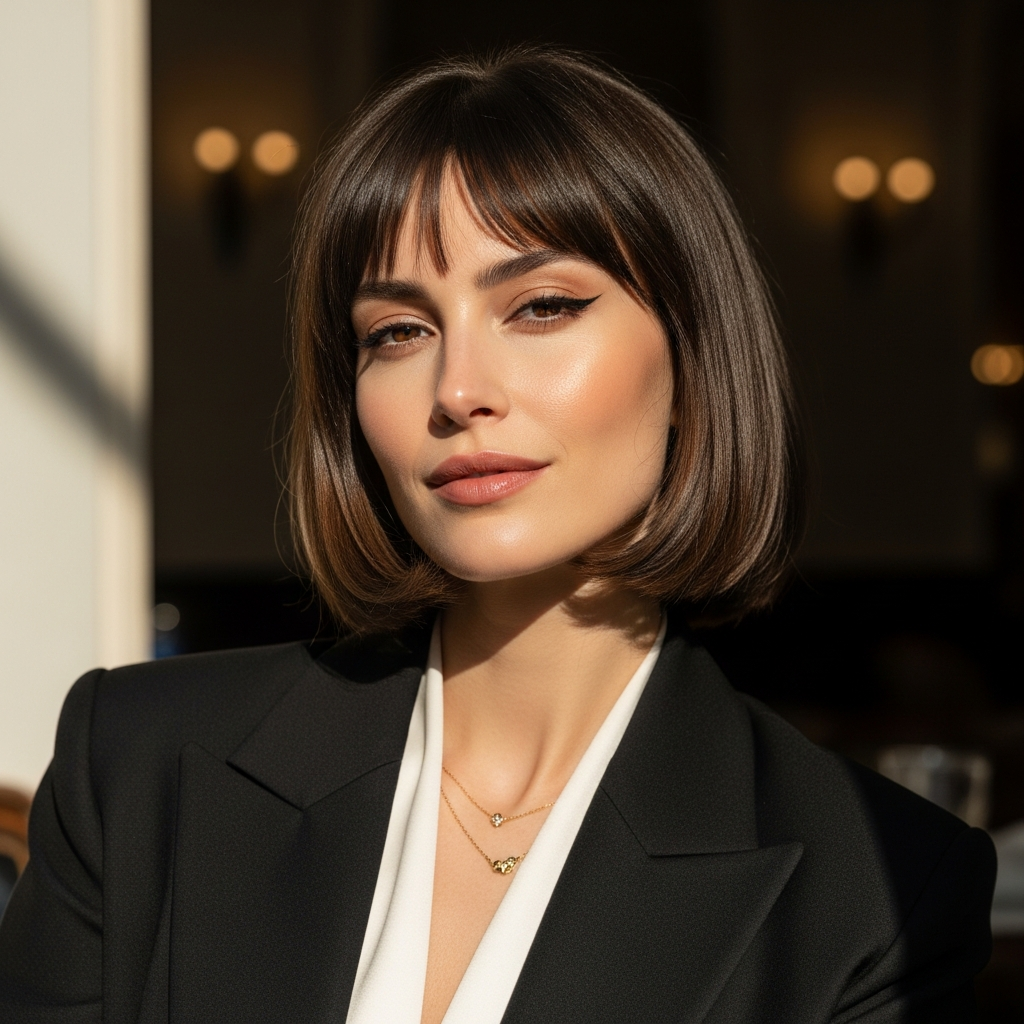 This sophisticated cut beautifully frames oval, heart, and square face shapes, enhancing strong jawlines and delicate features. It can also complement round faces by creating a more elongated silhouette.