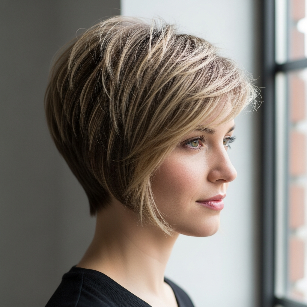 The Bixie is another fantastic hybrid, offering the short back of a pixie with the face-framing length of a bob. It is typically chin-length in the front and shorter at the nape. This cut is incredibly versatile and works on straight, wavy, and even fine to thick hair, adding volume and movement.