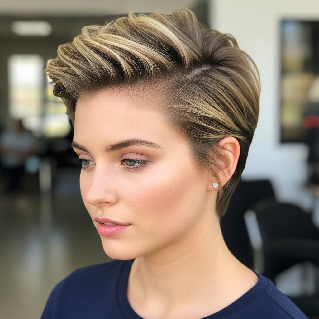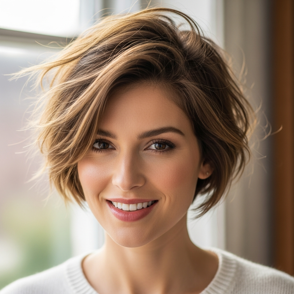 The tousled pixie is universally flattering. The soft texture and playful layers can soften angular features and add width to narrow faces, making it great for oval, round, square, and heart shapes.