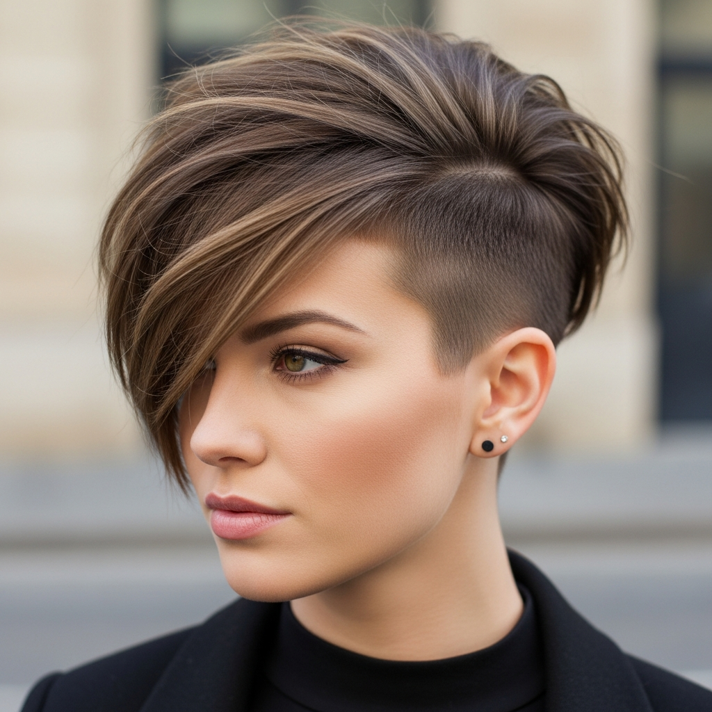 This style is excellent for adding edge and can be particularly flattering for round and square faces, as the diagonal lines create visual length and angles. It also looks fantastic on oval faces, highlighting symmetry with a twist.