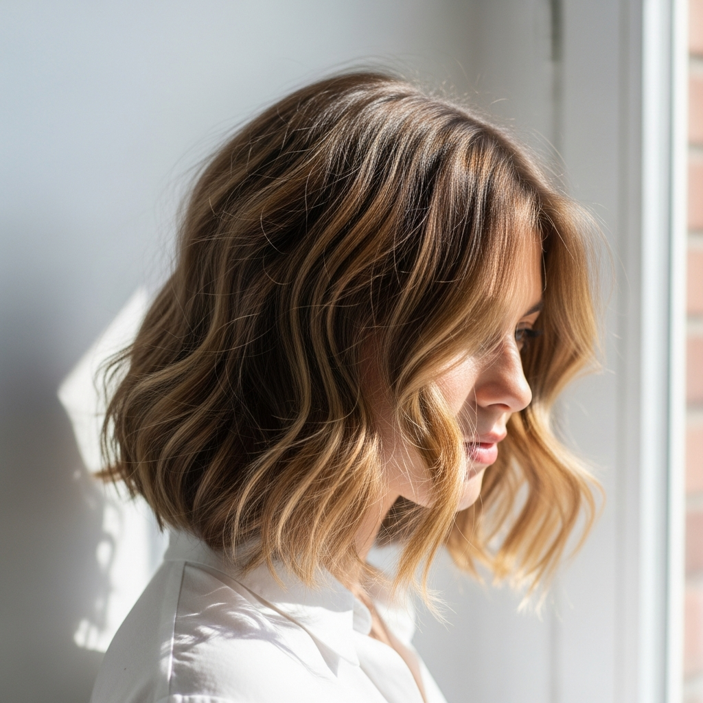 This style is incredibly versatile and flattering for almost all face shapes. The soft waves add width and balance, making it especially good for oval, long, square, and heart-shaped faces.