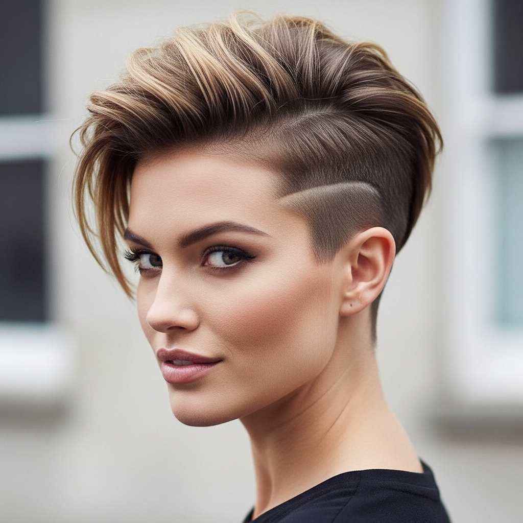 The undercut pixie features shaved or very closely cropped sides and/or back, with significantly longer hair on top. It is excellent for thick hair as it removes bulk, but also works on fine hair by adding an edgy contrast. Length on top can vary from a few inches to a longer fringe.