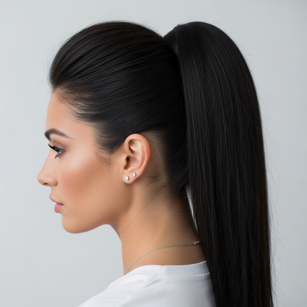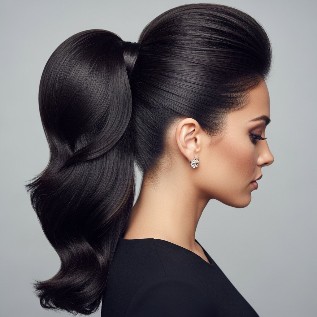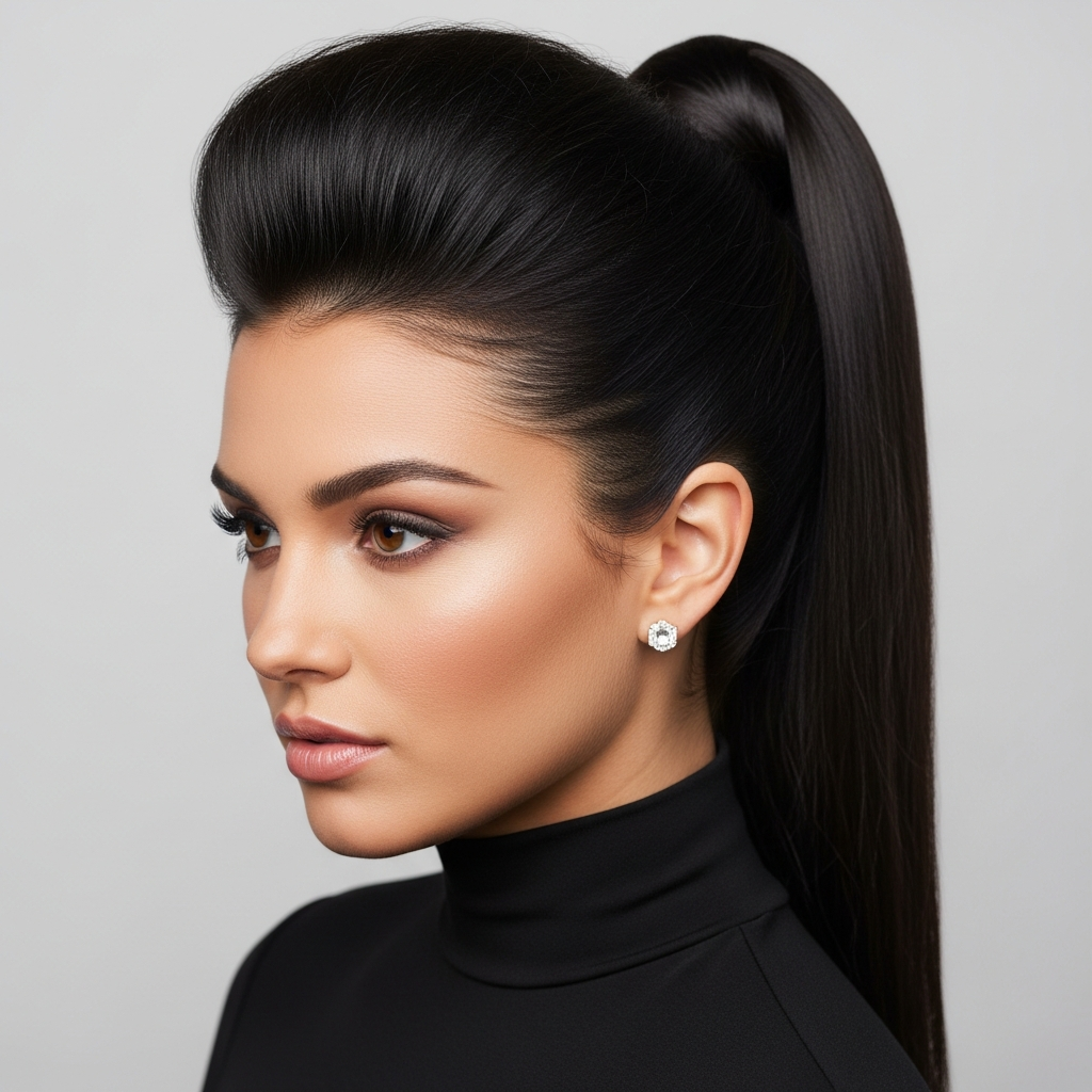 Styling Method: Section off the front section of your hair (from temple to temple). Gently tease the roots of this section, then smooth the top layer over the teased hair to create a subtle pompadour. Secure this section back with bobby pins or integrate it into your sleek high or mid-height ponytail. Ensure the sides are perfectly sleek. Finish with strong-hold hairspray.