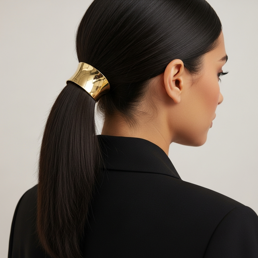 Styling Method: Create your chosen sleek ponytail (high, mid, or low). Once secured, add your favorite hair accessory at the base of the ponytail. Options include a sleek metal hair cuff, a velvet ribbon tied in a bow, a jeweled clip, or even a simple silk scarf. Ensure the accessory is securely placed and complements your outfit.