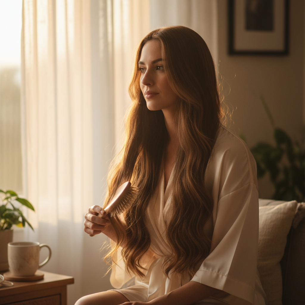 - Optionally, pull out a few very subtle face-framing pieces for an even softer look.