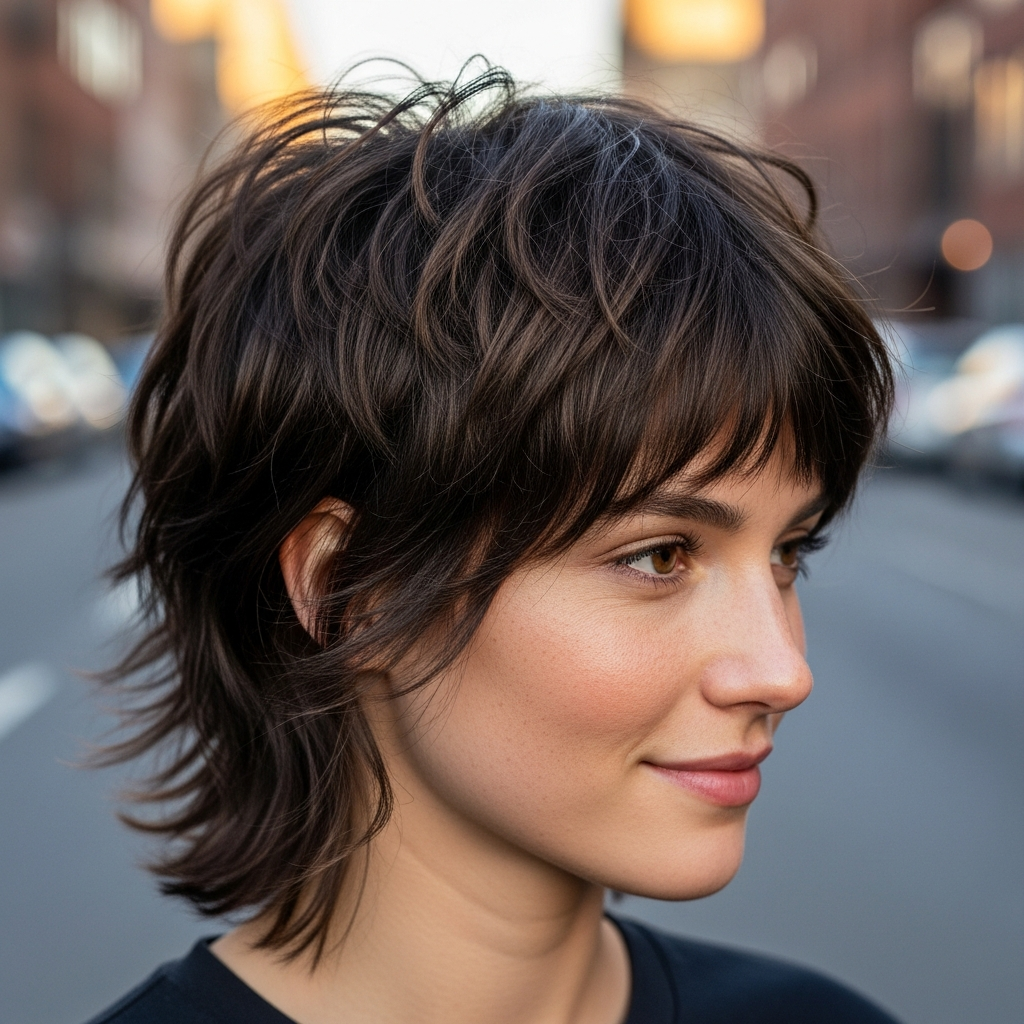The wolf cut is a hybrid of the shag and the mullet, characterized by extreme layering and volume at the crown. The short version of this cut provides a rebellious, edgy look that is full of movement. It is the perfect choice for the modern girl looking to embrace a bold, high-fashion aesthetic with plenty of attitude.
