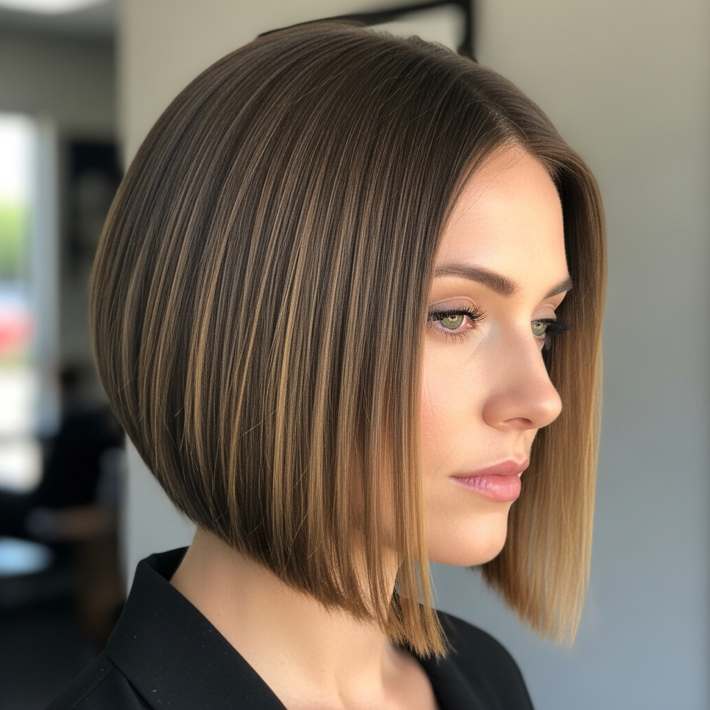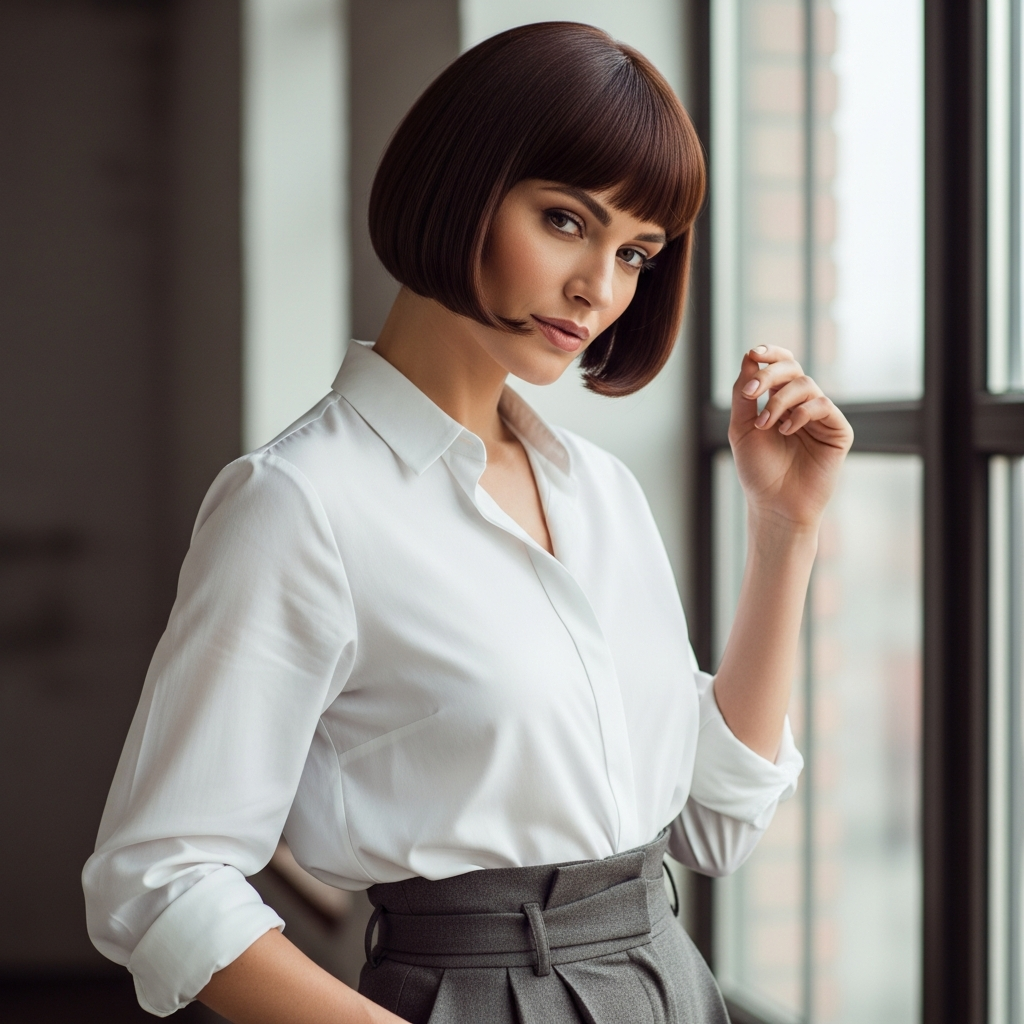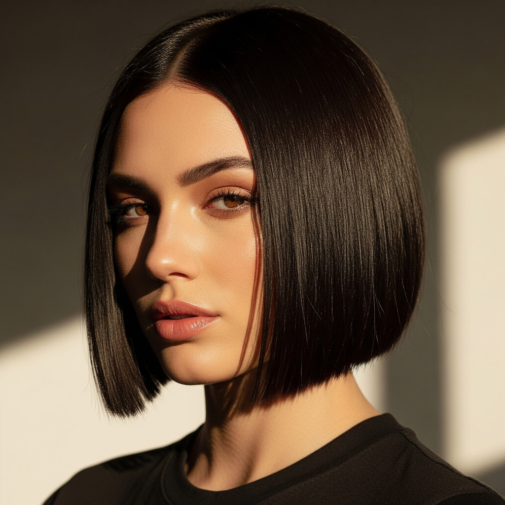 Bold, strong, and undeniably chic, the blunt bob is cut at one length all around, creating a striking, graphic silhouette. This style is particularly stunning on straight to slightly wavy hair, showcasing its precision.